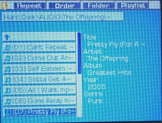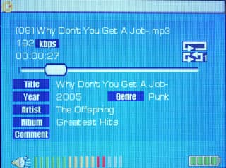 Разумеется, остается оно на месте и при воспроизведении, но вот тут-то можно заметить некоторые ограничения: комбайн поддерживает ID3-тэги обеих версий, однако в случае второй (которой он отдает предпочтение при наличии обоих тэгов) отображаются не более 30 символов каждого поля. Поддержка разных параметров кодирования неплохая: плеер воспроизвел почти весь набор тестовых файлов, однако испытывал некоторые проблемы с низкими битрейтами и частотами дискретизации. В частности, 11 кГц 32 Кбит/с оказалось ему вообще не «по зубам», а 22 кГц 8 Кбит/с превратилось в одно сплошное искажение (понимаю, что при таких параметрах о качестве рассуждать не приходится, однако многие плееры сжатую таким образом речь хотя бы разборчиво воспроизводят). В то же время с файлом с параметрами кодирования 8 кГц 32 Кбит/с и даже с «экстремальным» 8 кГц 8 Кбит/с никаких проблем не было, так что устройству конкретно не нравится, я так и не понял. С другой стороны, такие файлы используются крайне редко — даже для аудиокниг чаще применяется что-то вроде 22 кГц 64 Кбит/с, а с этим проблем у комбайна нет: он нормально справился как с обычным файлом из тестового набора, так и со «специальным» — заведомо проблемным для Archos XS100 (его владельцем и присланный :)).