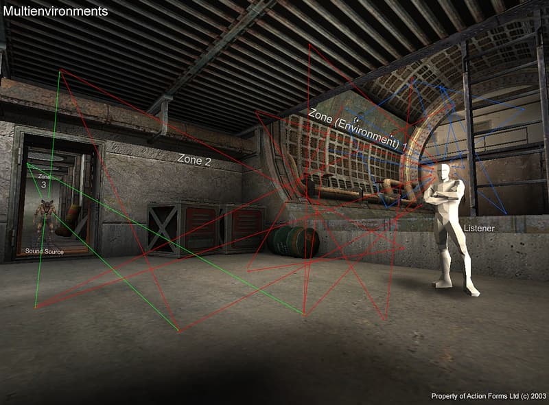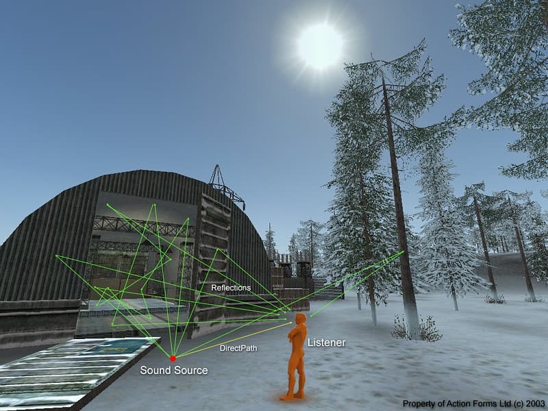 Для создания полного ощущения погружения в игру необходимо рассчитать акустическую среду окружения и ее взаимодействие с источниками звука. По мере распространения звука, звуковые волны вступают во воздействие со средой, в которой распространяются. При распространении звуковые волны достигают слушателя различными путями: