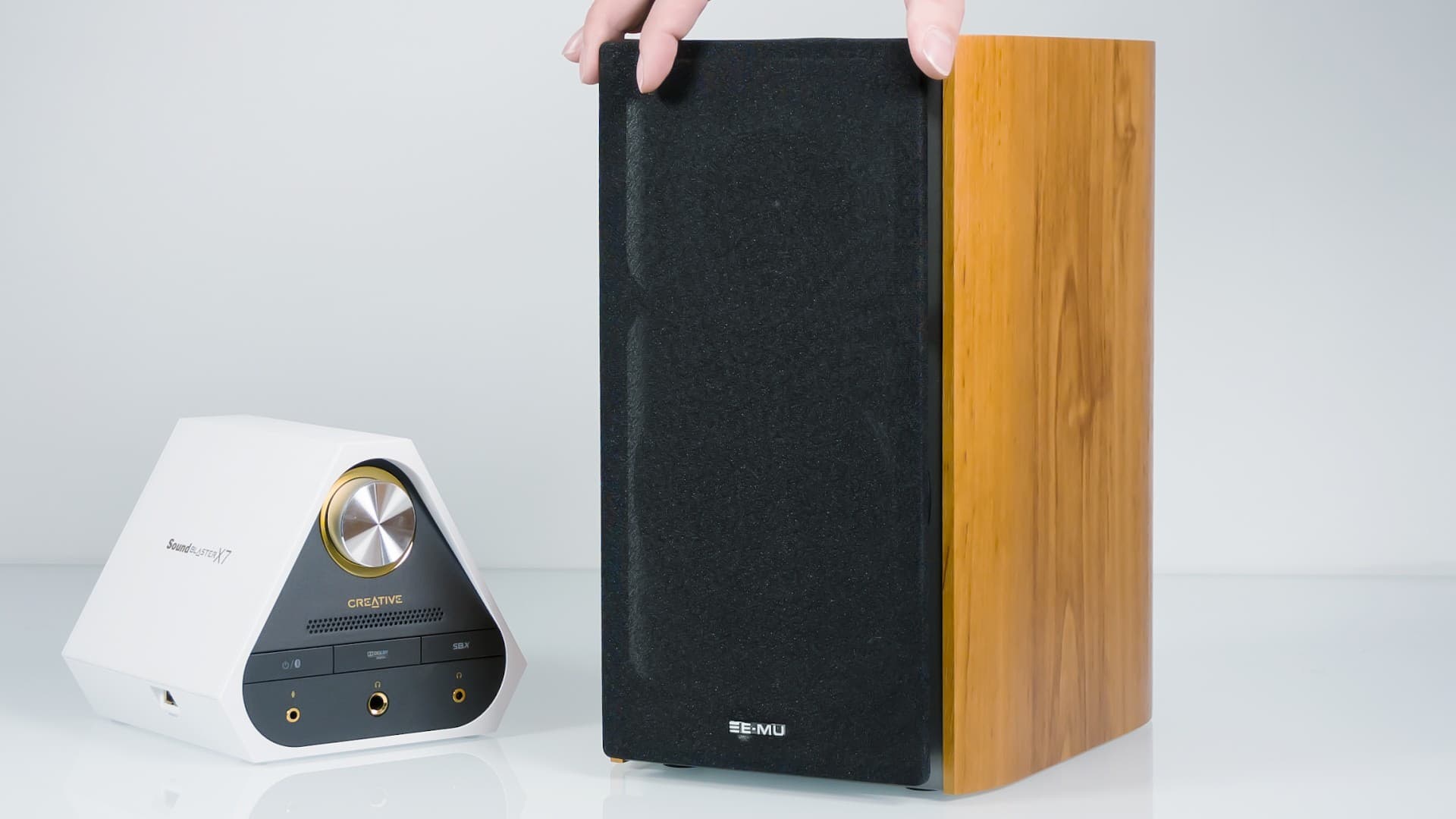 Появление в 2015 году пассивных 5-дюймовых полочников E-MU XM7 в корне изменило ситуацию. Хорошая новость: в компании поставили действительно конкурентоспособные динамические головки, сохранив при этом и доступную цену. Creative Sound Blaster X7 имеет специальный режим работы совместно с колонками E-MU XM7, но может использоваться и с другими акустическими системами. Впрочем, плюс тут как раз в том, что купив комплект, пользователь снимает с себя проблему поиска отдельных компонентов, получая гарантированно приличный звук. Вот на таких пользователей и рассчитан набор Creative.