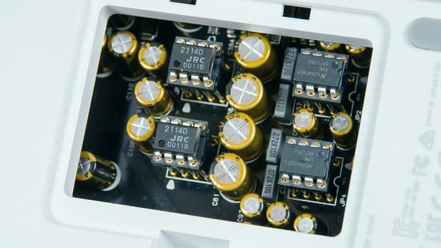 Sound Blaster X7 имеет окошечко для доступа к операционным усилителям в корпусах DIP8 для их легкой замены без пайки. В отличие от такой аудиофильской забавы, как «шнурковщина», замена ОУ обходится дешевле и позволяет гарантированно повлиять на звучание, что фиксируется и измерениями, и на слух. К самой возможности замены ОУ можно относиться по-разному. В целом мы относимся к ней скорее скептически, так как в недорогих звуковых устройствах намного важнее наличие корректно работающего цифрового процессора, клока и питания. Все остальное влияет в последнюю очередь. В дорогих устройствах, где все сделано хорошо, замена ОУ дает положительный результат.