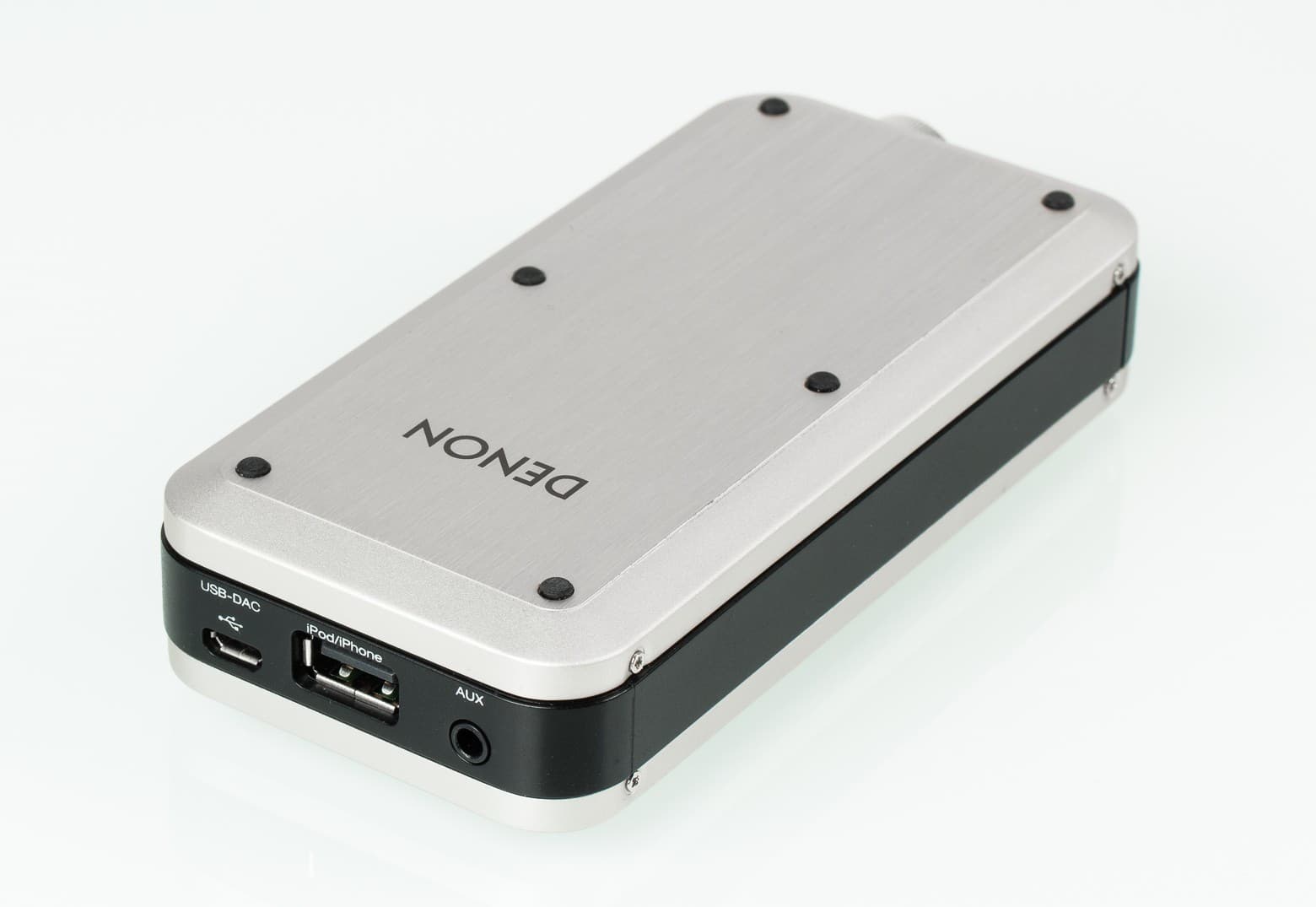 Устройство выполнено из пластика с декоративными алюминиевыми накладками и ручкой. Корпус выполнен толстым намеренно — чтобы в режиме звуковой карты было удобно крутить ручку громкости. Denon DA-10 сделан очень добротно, комплектуется ASIO-драйвером и недешев по цене. Чувствуется, что это устройство очень высокого класса, призванное конкурировать с самыми дорогими моделями, не опускаясь в массовый рынок. В комплекте даже идут провода для iOS-устройств — как с разъемом Lightning, так и 30-контактный. Все выглядит максимально продуманным.