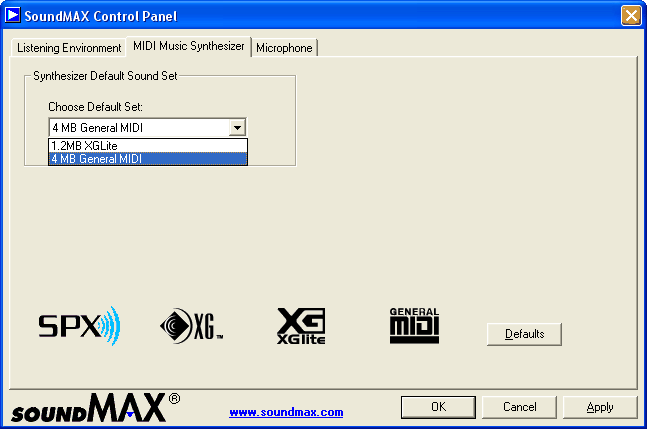 После установки всех драйверов в трее появляются значки, вызывающие стандартные вкладки настроек SoundMAX. При этом, имеется новая вкладка, посвящённая микрофону.