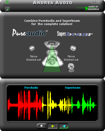 Что интересно, поддерживаются стандартные микрофоны и хедсеты. Для SoundMAX Superbeam существует отдельный Wizard, позволяющий автоматически подстроить уровень записи.