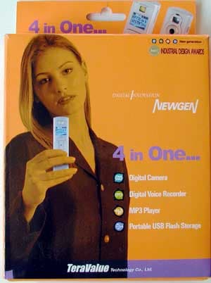 Сегодняшнее устройство значительно отличается от Photoclip. Во-первых, мы имеем меньшее число функций: как Web-камера, например, Newgen работать не может, так что осталось лишь четыре составляющих: МР3-плеер, фотокамера, диктофон и средство транспортировки данных. Кроме того, устройство проектировалось по изначально другим принципам. В основу Photoclip был положен цифровой фотоаппарат, соответственно подбирались внешний вид и компоновка устройства, а также делался выбор в пользу CompactFlash (чаще всего применяется именно в фототехнике). В результате фотоаппарат и получился пусть и слабоватый, но все остальное работало еще хуже. В Newgen же основой стал цифровой диктофон. Поэтому устройство выглядит подобно другим диктофонам, да и функционирует подобным образом. Впрочем, и другие выполняемые устройством функции заслуживают внимания, так что мы их сейчас рассмотрим подробно.