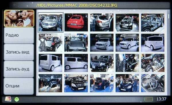 Поскольку устройство снабжено большим дисплеем и поддержкой карт памяти, очевидно, что производитель постарался максимально качественно реализовать функцию отображения графических файлов. Во-первых, уважения сразу заслуживает список поддерживаемых форматов — если JPEG и BMP обрабатывается большинством медиаплееров, а TIFF и GIF, пусть и более редкие гости, но не так и часто нужные, то прямая поддержка DNG и RAW-файлов многих цифровых камер быстро выводит VP88x0 уровнем выше стандартных медиакомбайнов, позволяя ему (вкупе с достаточно высокой скоростью копирования информации с карт памяти) конкурировать и со специализированными фотовинчестерами. Так что ничего удивительного нет и в способности отображать EXIF-тэги и даже гистограммы. К сожалению, только для JPEG, но и это уже неплохо. Комбайну бы еще автономность повыше (чтоб хотя бы гигабайт 50-60 фотографий с карт можно было скопировать) — и ему бы цены не было.