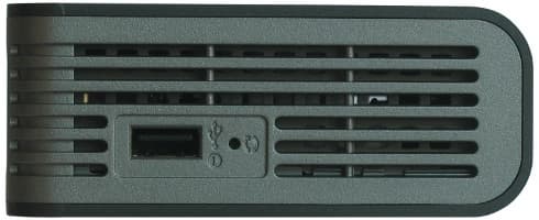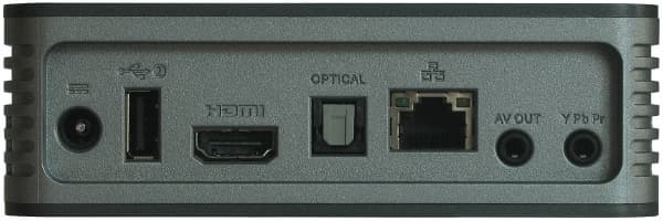 На боковой (или верхней) стороне есть один порт USB и кнопка сброса. На задней панели — все остальные разъемы. Здесь можно найти вход блока питания, второй порт USB, HDMI, оптический цифровой аудиовыход, сетевой порт, аналоговые аудиовидеоразъемы.