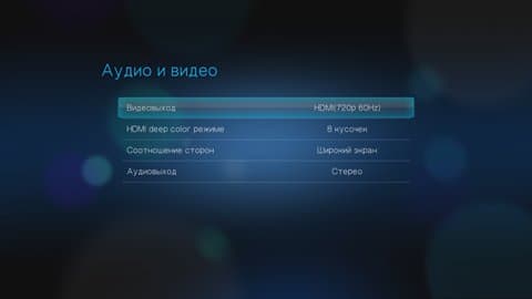 Всего предусмотрено семь групп параметров. Первая — «Аудио и видео» — используется для установки работы выходов — настраивается тип и режим видеовыхода, активируется поддержка DeepColor на HDMI, выбирается соотношение сторон экрана и режим аудиовыхода (стерео аналоговый или цифровой). Отметим здесь отсутствие поддержки автовыбора кадровой частоты в зависимости от типа исходного материала, хотя сам по себе 1080p24 присутствует в параметрах.