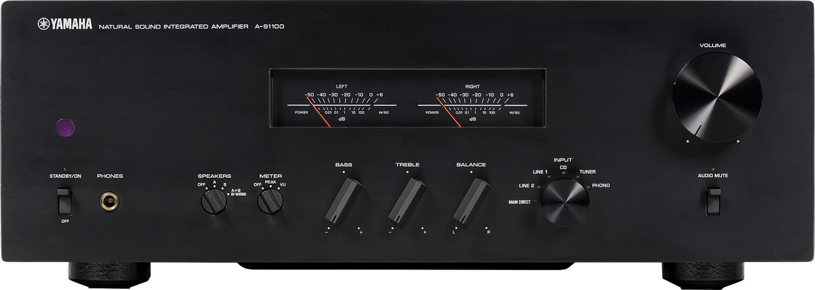 Yamaha A-S1100 — это интегральный стереоусилитель мощностью 160 Вт (4 Ом) на канал, с коэффициентом демпфирования 250, «винтажным» дизайном и внушительной массой в 23,3 кг. Полный список характеристик можно посмотреть на сайте производителя.