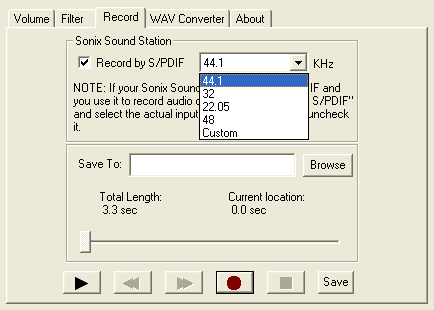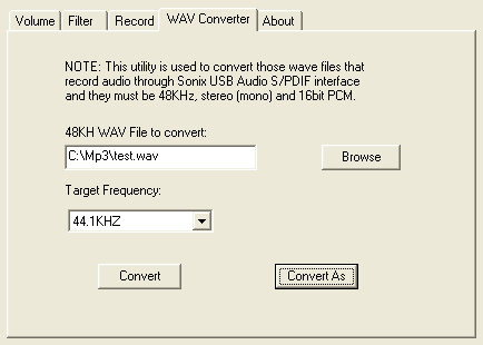 На следующих двух вкладках «Record» и «Wav Converter» доступны настройки записи с цифрового оптического входа с последующей конвертацией wav-файла с нужной частотой семплирования (до 48 кГц).