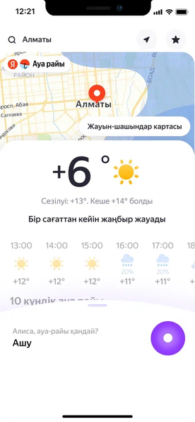 Ещё у Алисы можно спросить, что посмотреть в Астане, — и она предложит подходящие варианты в поиске. Виртуальный помощник также подскажет, какая погода в разных городах Казахстана сейчас или какой прогноз на выходные. В дальнейшем количество сценариев использования виртуального ассистента на казахском языке увеличится.