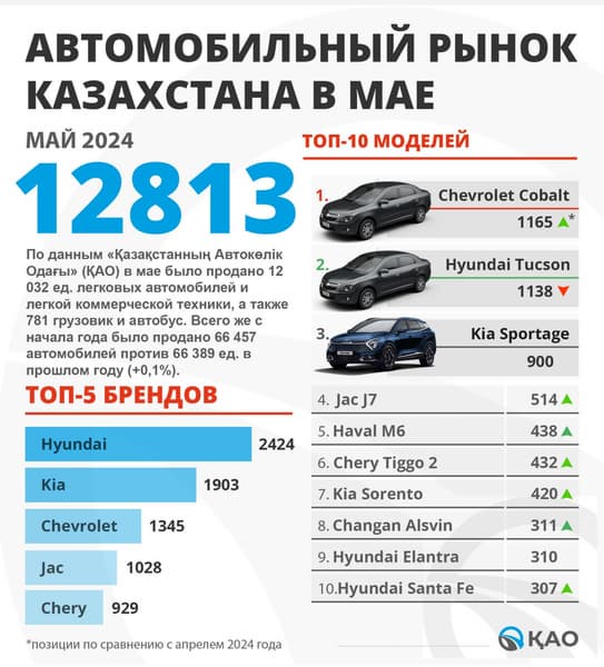 Если в России неизменных хитом на авторынке является Lada, то в Казахстане самый популярный автомобиль в мае текущего года был отмечен значком Chevrolet. Это — Chevrolet Cobalt. В мае казахстанцы купили 1165 «Кобальтов». Машина продается и в России, минимальная цена — 1,29 млн рублей.