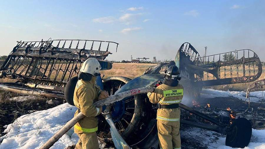 «Кукурузник потерпел крушение в Акмолинской области. Сегодня в 10 км от города Державинска при взлете произошло возгорание самолета Ан-2. Пилот самостоятельно эвакуировался из горящей техники», — говорится в заявлении ведомства.