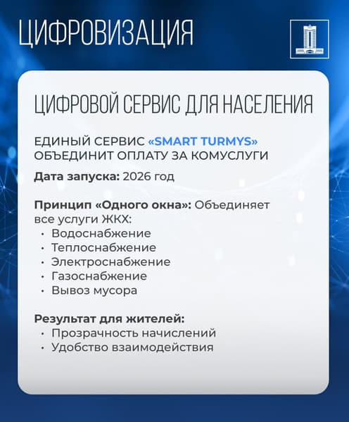По словам Дубировой, Smart Turmys будет удобным для потребителей и поможет обеспечить прозрачность начислений. Сервис объединит услуги по водо-, тепло-, электро-, газоснабжению, а также вывозу мусора. Единая платформа упростит взаимодействие казахстанцев с коммунальщиками, а также снизит количество обращений и жалоб в другие инстанции.