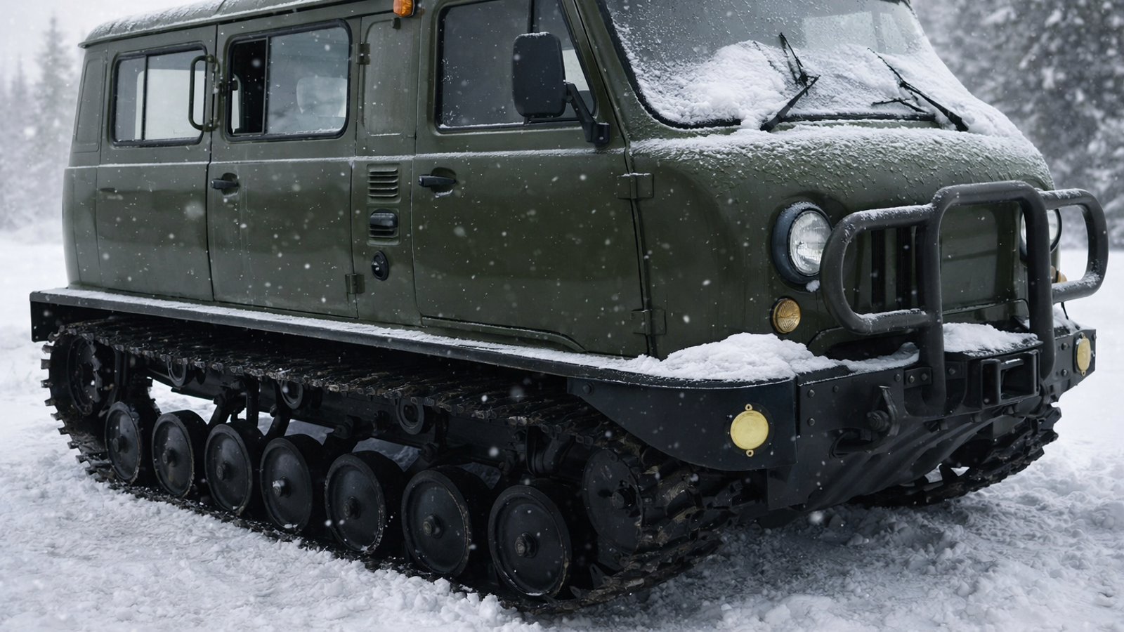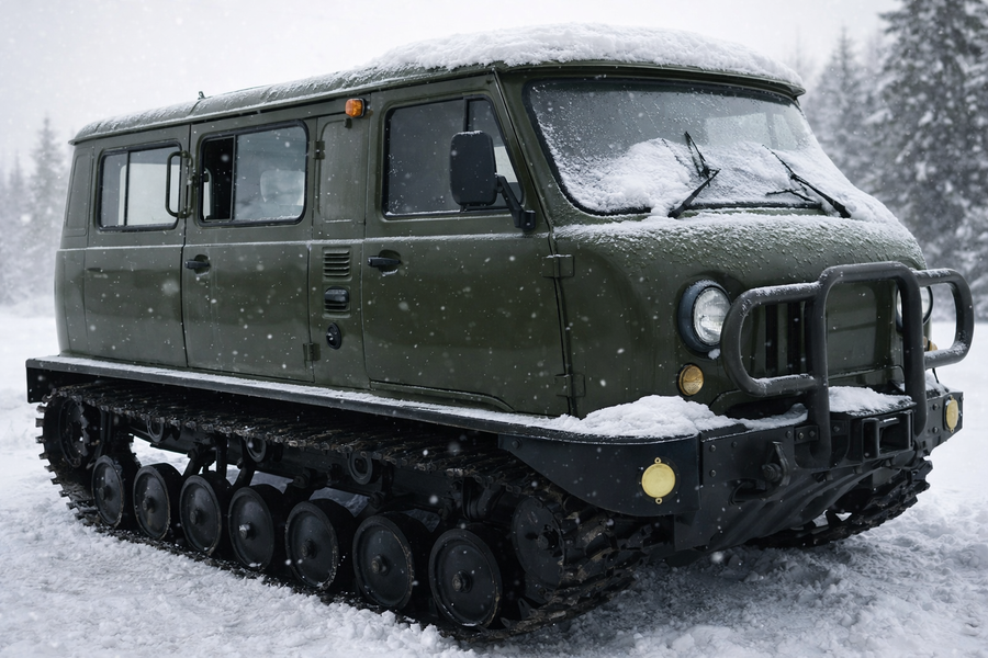 Главная техническая особенность машины — полноценные гусеницы вместо колес, обеспечивающие отличную проходимость по болотам, целине и глубокому снегу. В отличие от многочисленных кустарных проектов, этот вездеход является официальной заводской продукцией «Заволжского завода вездеходных машин». Под капотом установлен 2,9-литровый двигатель ЗМЗ-409 мощностью 142 л.с., коробка передач механическая.