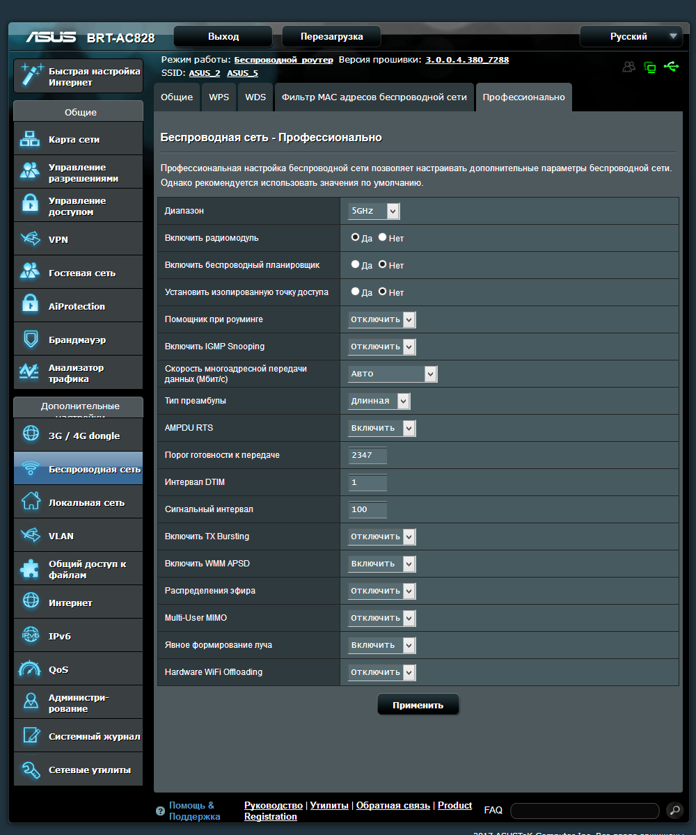 Основное тестирование роутера проводилось с прошивкой версии 3.0.0.4.380_6947, для некоторых тестов использовалась и более новая версия 3.0.0.4.380_7288.