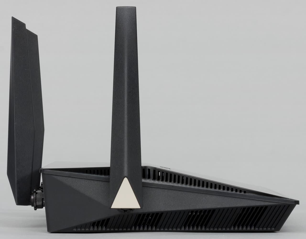 Роутер оборудован парой портов WAN и восемью портами LAN. В основном процессоре есть только четыре порта для подключения сетевых контроллеров. Так что для реализации этой схемы используются два подключенных к нему чипа-трансивера QCA8033 для WAN, а также внешний коммутатор Realtek RLT8370MB для LAN. Особенности второй микросхемы и способ ее подключения позволяют компании говорить о том, что роутер способен реализовать доступ к интернету на скорости 2 Гбит/с.