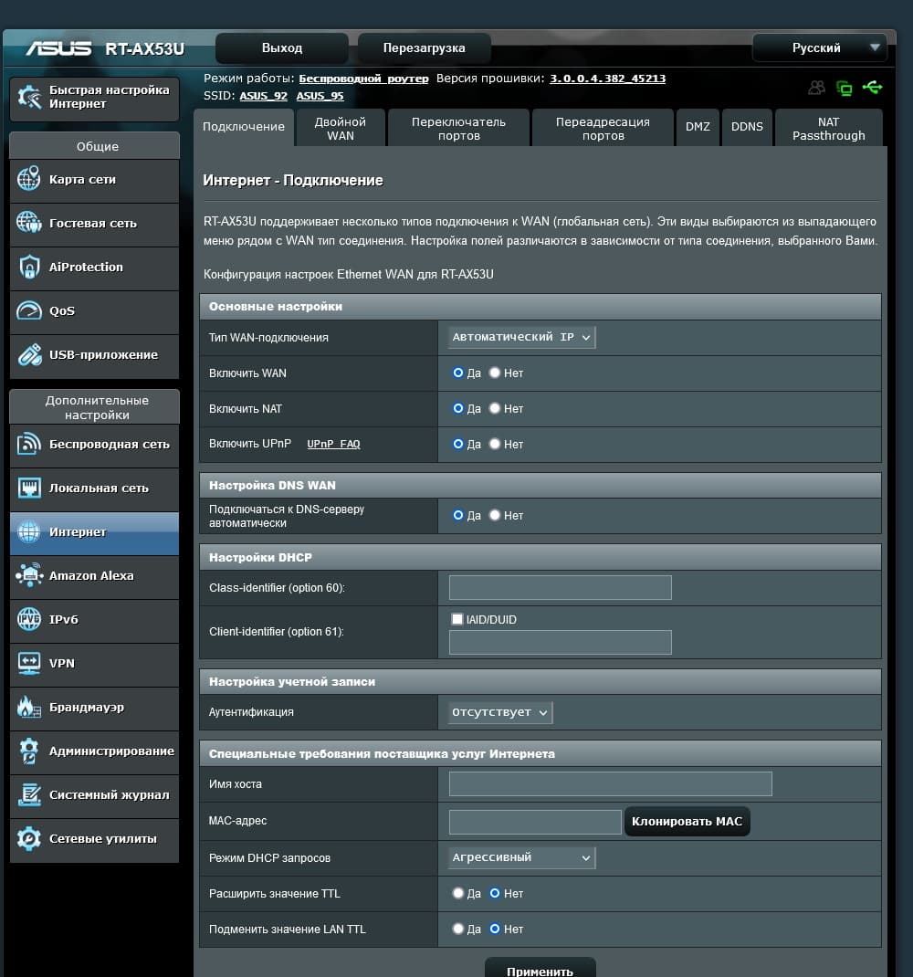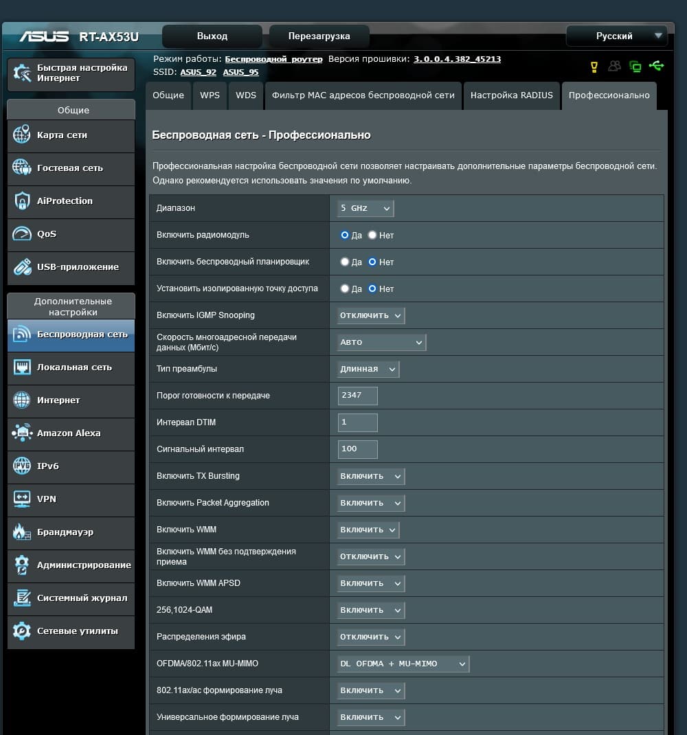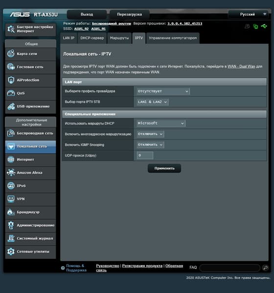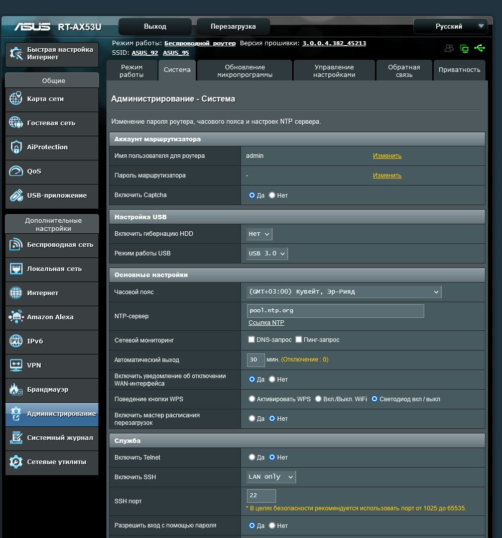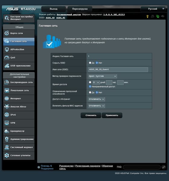Тестирование проводилось с релизной прошивкой версии 3.0.0.4.382_45213.
