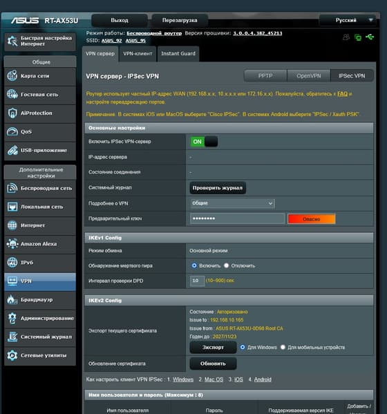Одной из популярных дополнительных функций современных роутеров являются технологии VPN. В прошивке рассматриваемой модели есть возможность организации сервера VPN с поддержкой протоколов PPTP, OpenVPN и IPSec. Напомним, что для их работы обязательно иметь «белый» адрес от провайдера.