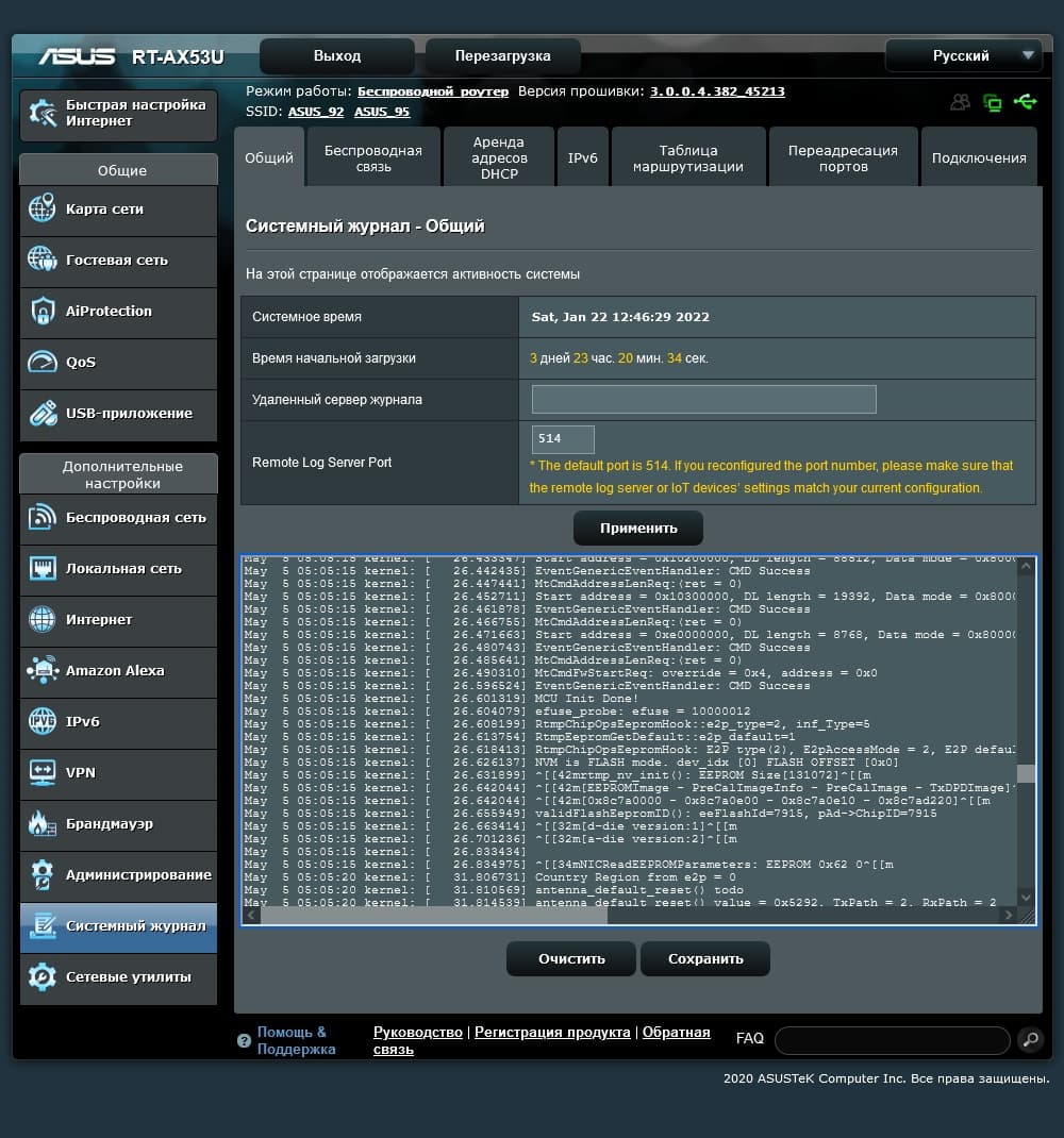Если же вы планируете самостоятельно разбираться с возникшей проблемой, то большую помощь окажут системный журнал, журнал беспроводных подключений, данные от сервера DHCP, информация по IPv6, таблица маршрутизации, список открытых по UPnP портов, а также список соединений. Роутер поддерживает отправку системных событий на сервер syslog.