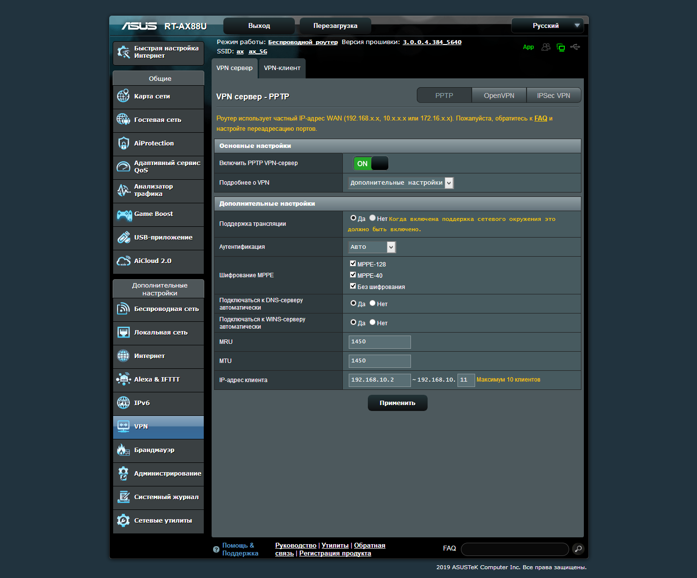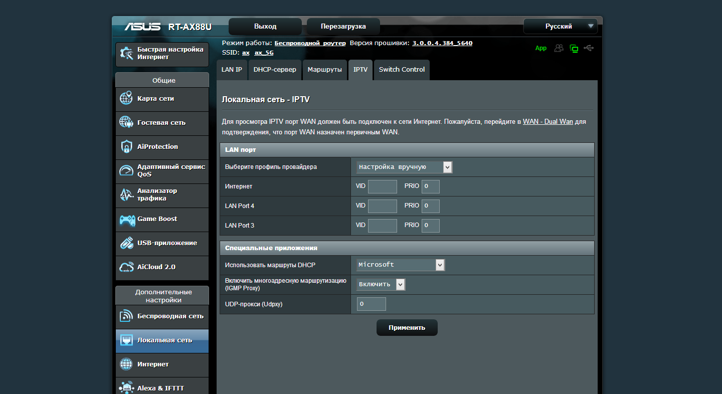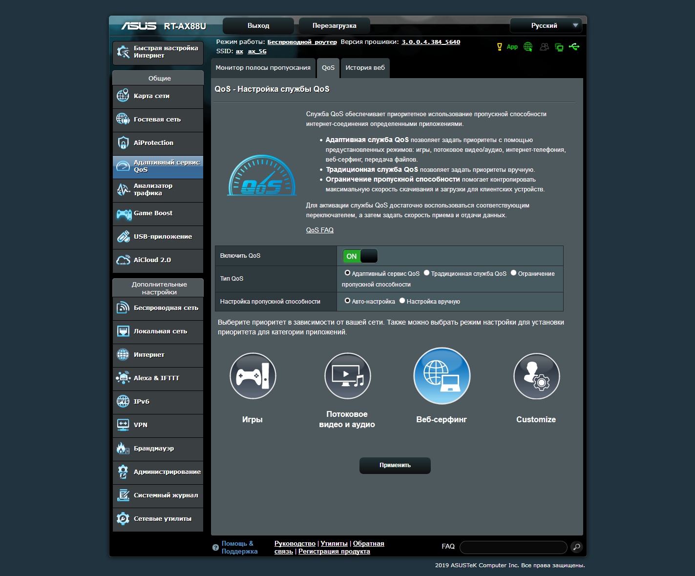 Тестирование роутера проводилось с прошивкой версии 3.0.0.4.384_5640, последней доступной на момент работы над статьей.