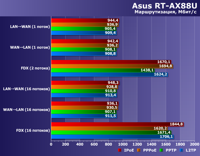 Тесты показали, что роутер Asus RT-AX88U является сегодня одним из наиболее производительных решений в домашнем сегменте. Устройство способно эффективно выполнять маршрутизацию интернет-трафика на скоростях до 1 Гбит/с включительно, поддерживает новый стандарт беспроводной связи 802.11ax и при этом также хорошо и быстро работает с клиентами прошлых поколений, может выполнять функции сетевого хранилища, реализует безопасный удаленный доступ к локальной сети через VPN на высокой скорости.