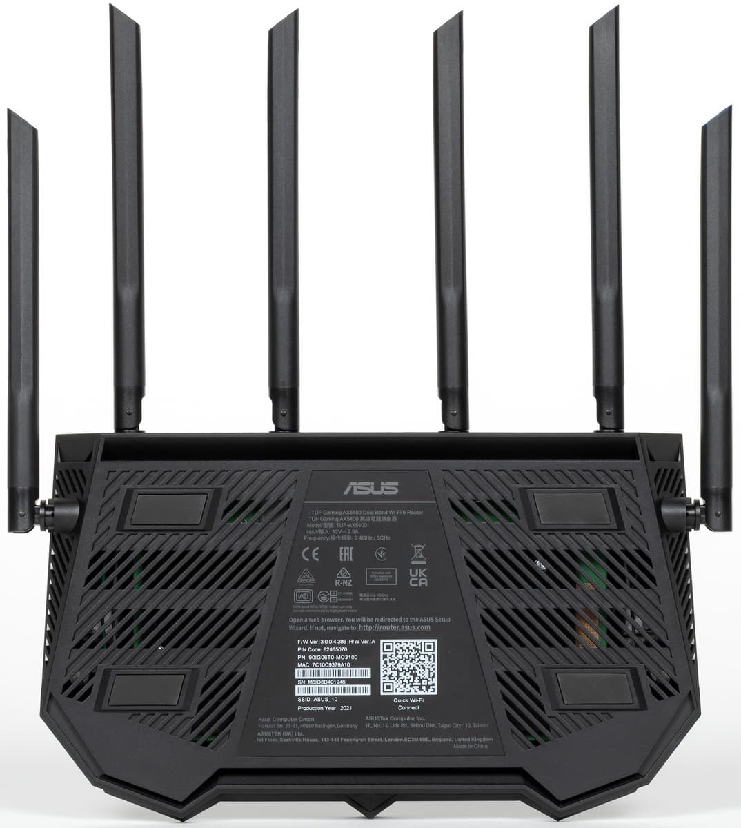 Разработчики отмечают следующие ключевые особенности продукта: класс AX5400, поддержка режима объединения портов для LAN и WAN, простая настройка проброса портов, оптимизация для игровых приложений на ПК и мобильных устройствах, поддержка Asus AiMesh, многоцветная подсветка Aura. К сожалению, часть из описанного сложно оценить с точки зрения реальной эффективности. Так что в разделе тестирования этого материала мы сосредоточимся на том, что́ можно измерить, включая основную задачу маршрутизации трафика, работу с беспроводными клиентами в режиме Wi-Fi 6 и скорость доступа к файлам на USB-накопителе.
