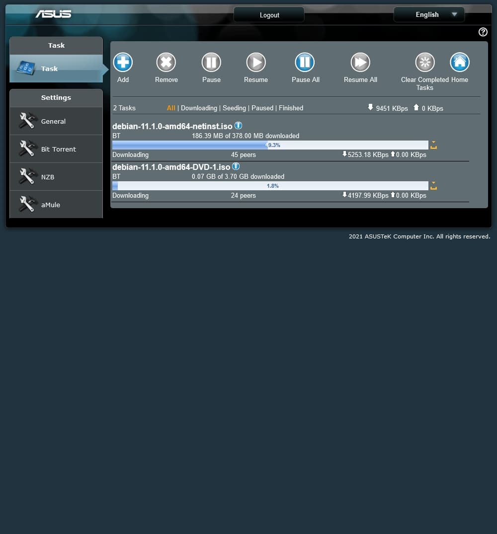 Не забыли реализовать систему автономной загрузки файлов Download Master. Для ее использования необходимо предварительно установить ее на накопитель. Управление ее работой осуществляется через веб-интерфейс. Поддерживаются как привычные ссылки HTTP/FTP, так и p2p-протоколы. Предусмотрены привычные настройки с ограничением скоростей и числа пиров, расписание работы и так далее. Жаль только, что для доступа необходимо использовать основной аккаунт администратора роутера.