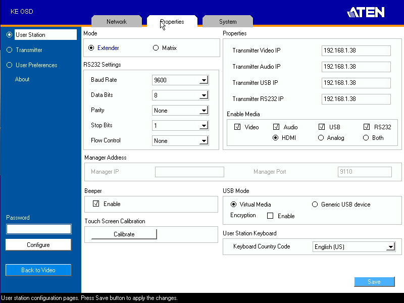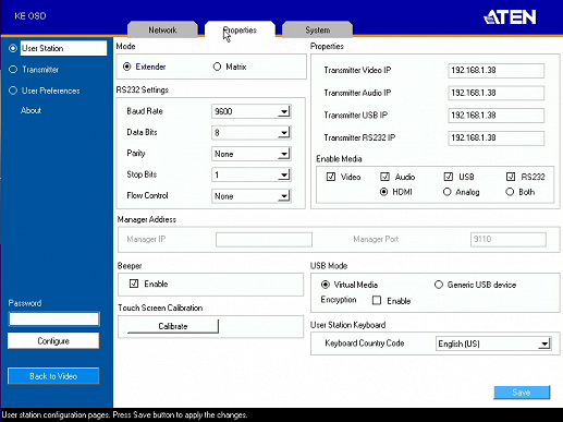 Если же речь о работе через локальную сеть, то нужно будет, как минимум, поменять адреса сетевых интерфейсов устройств. Для этого можно задать адреса каждому устройству индивидуально (соединив их в режиме точка-точка одним кабелем и после внедрив в сеть), либо воспользовавшись фирменной утилитой IP Installer, в которой можно установить IP-адреса передатчика и приемника в локальной сети (правда показалось странным, что она не спрашивает пароль для изменения настроек; если это является проблемой, то ограничить работу утилиты можно будет далее в настройках). При необходимости реализации матричной схемы, специальное программное обеспечение KE Matrix Management автоматически распознает все найденные в локальной сети устройства и переключит их в режим «Матрица».