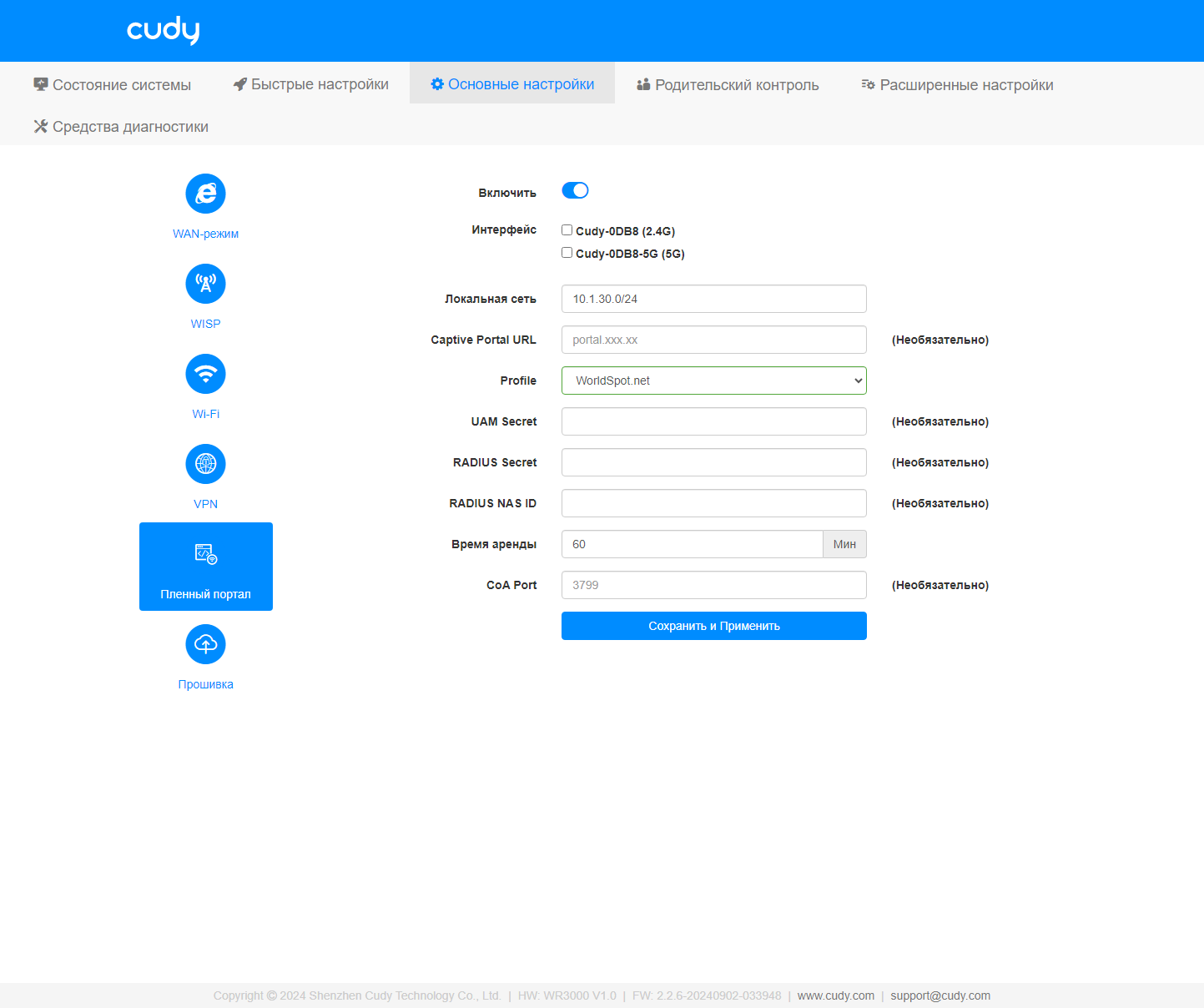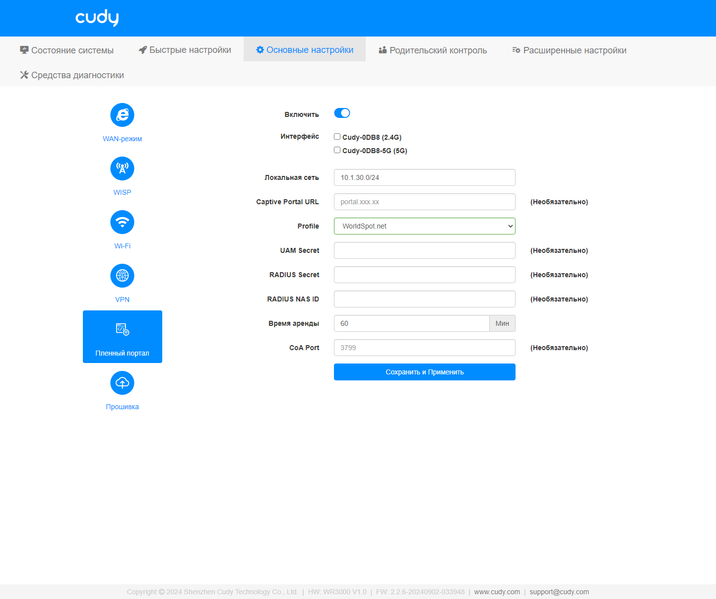 Загадочный «Пленный портал» является реализацией популярного в бизнес-сегменте сервиса Captive portal. Зачем это на домашнем устройстве — не очень понятно. Тем более, что набор предустановленных сервисов авторизации явно «не наш», а настройка пользовательского сервера RADIUS определенно выходит за рамки компетенций домашнего администратора.