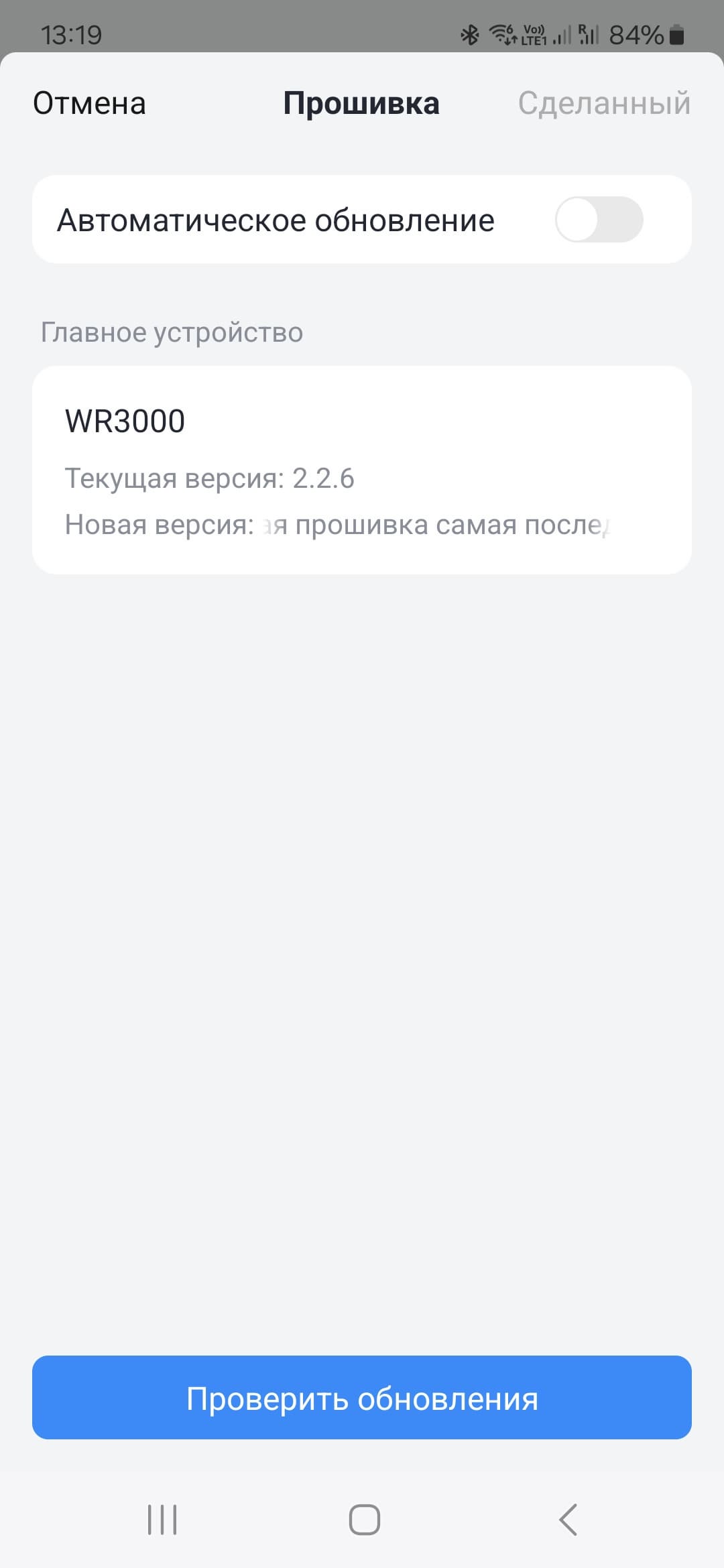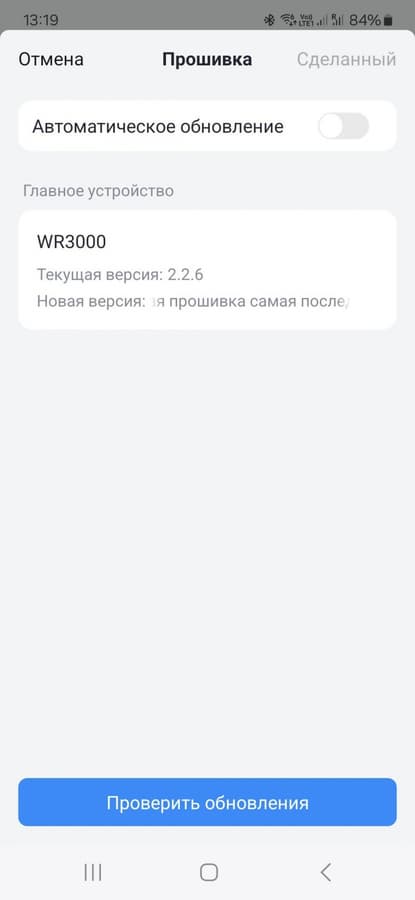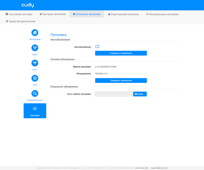 Последняя страница раздела — обновление прошивки. Из полезного отметим поддержку автоматической проверки и установки через интернет.