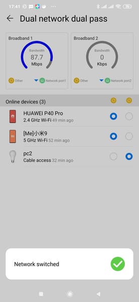 Гостевая сеть работает в диапазонах 2,4 и 5 ГГц, имеет собственное имя и пароль, а также можно включаться на определенный период.