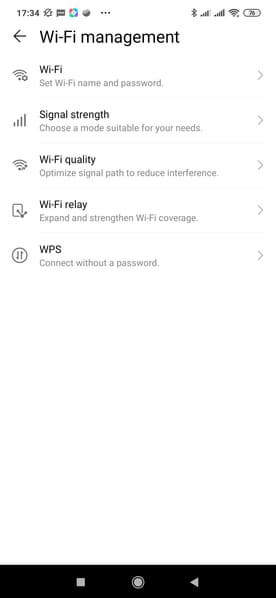 Меню настроек состоит из четырех пунктов — подключение к интернету, Wi-Fi, управление клиентами, расширенные настройки.