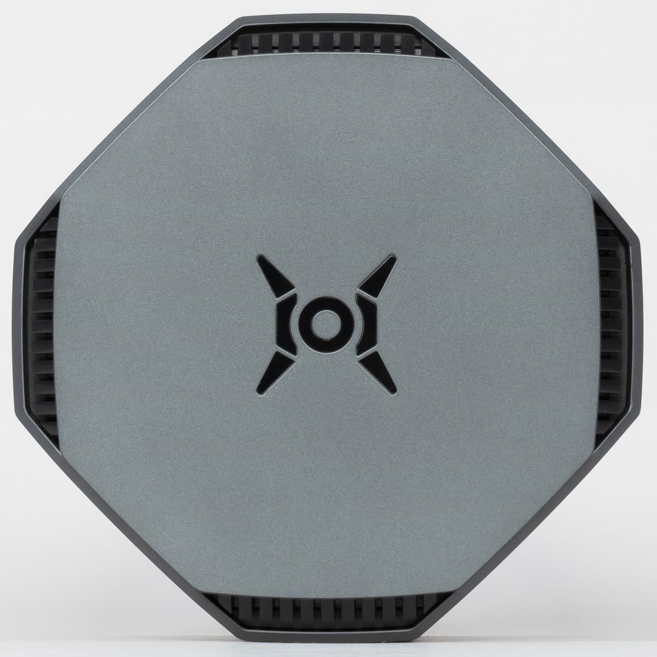 На верхней панели расположен логотип. Как ни удивительно, подсветки в нем нет. Скошенные углы используются для размещения решеток вентиляции, внутри которых находятся многоцветные светодиоды, работающие индикатором состояния устройства.