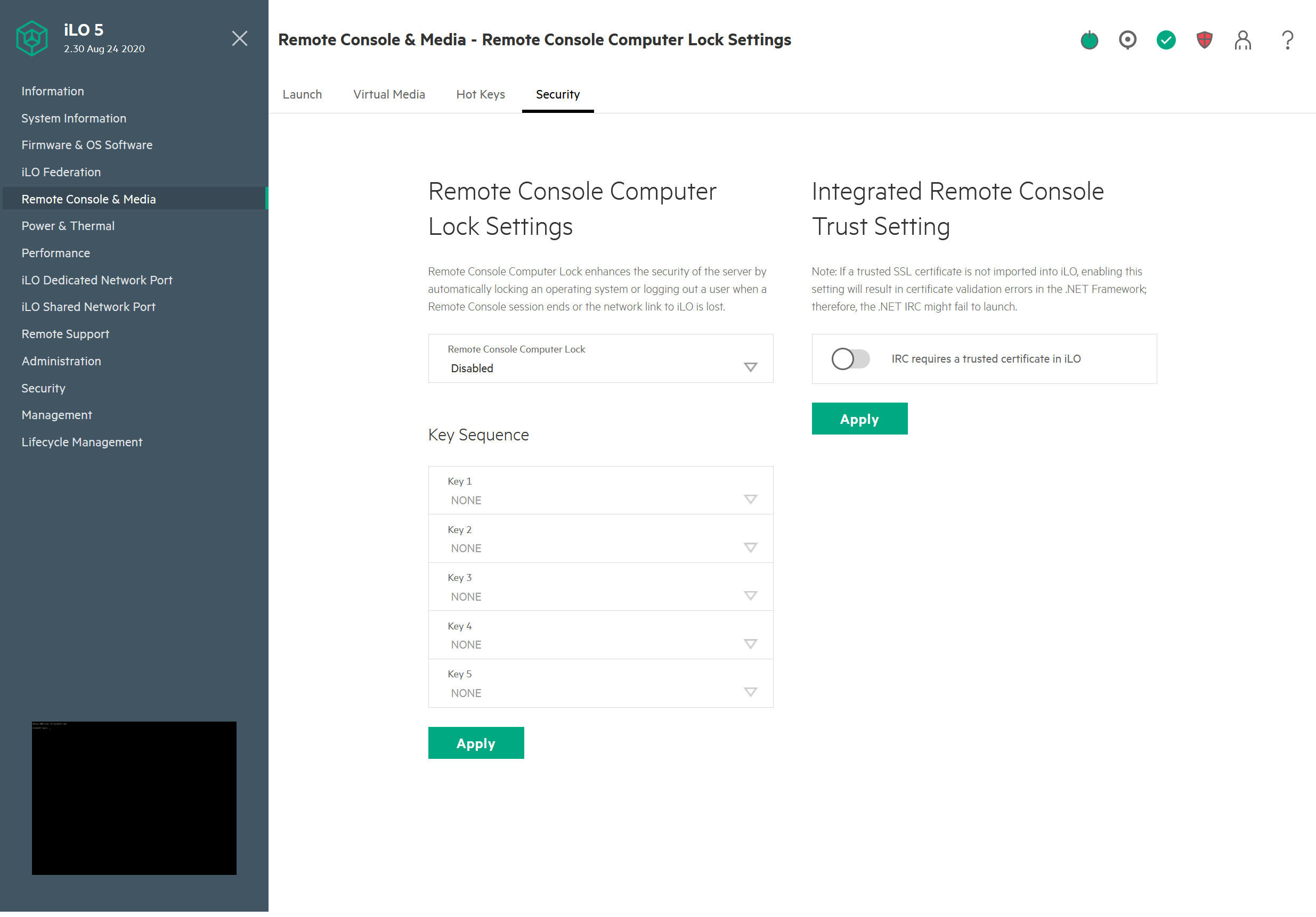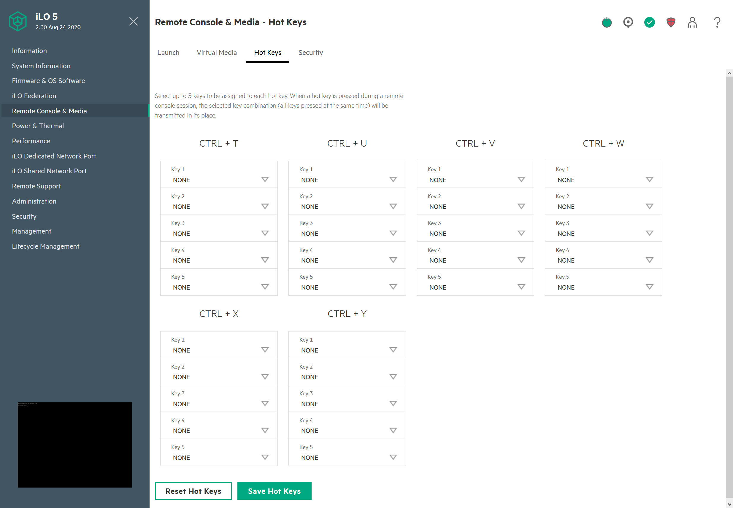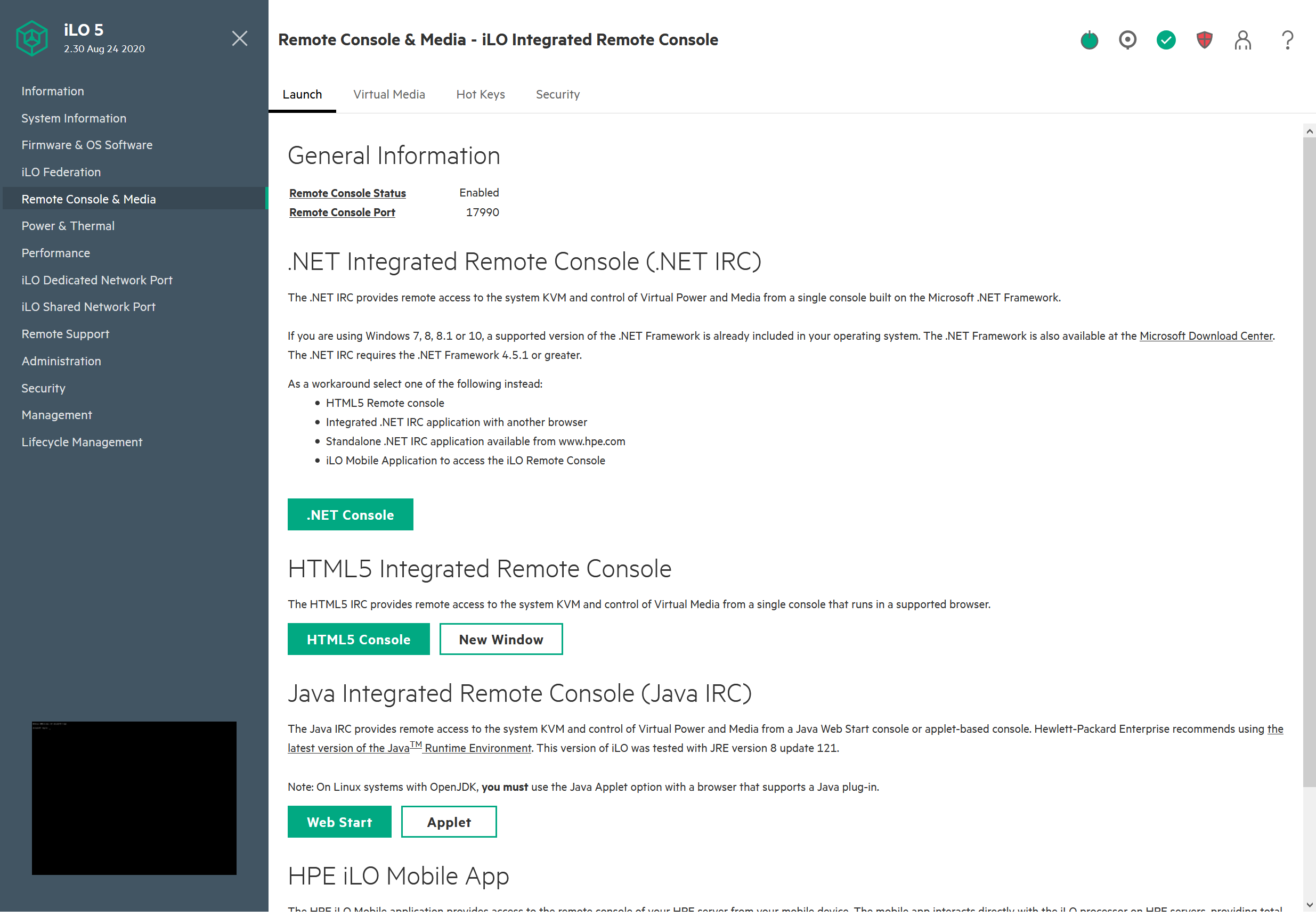 Мы говорили ранее, что сервис удаленного доступа к консоли сервера в базовой версии iLO работает в ограниченном виде. Для полноценного использования (в частности, доступа к установленной ОС) требуется дополнительная лицензия. В общем случае, есть несколько вариантов доступа: через клиент на .NET Framework (работает в современных версиях ОС Windows), через браузер с поддержкой HTML5, через программу на Java (на клиенте должен быть установлено соответствующее ПО и поддержка плагинов Java в браузере), а также фирменное мобильное приложение. Наиболее универсальным является, пожалуй, вариант с HTML5. Для установки ОС и осуществления обслуживания сервера пригодится и поддержка виртуальных носителей, в частности эмуляция оптических приводов из файлов ISO, находящихся на стороне клиента. На странице Hot Keys можно настроить до шести комбинаций до пяти кнопок каждая, для передачи их через удаленное подключение. Дополнительно можно включить опцию блокировки удаленной ОС при закрытии консоли удаленного доступа.