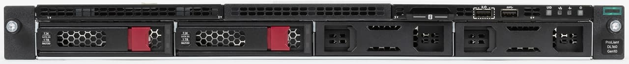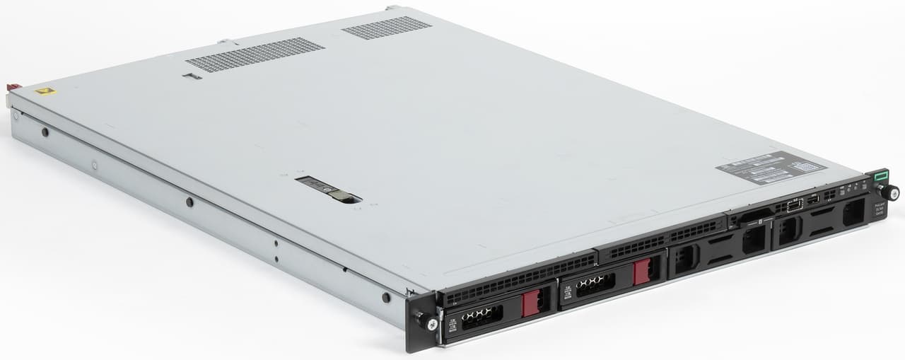 В качестве конкретного примера мы использовали сервер ProLiant DL160 Gen10 компании HPE, как одного из наиболее крупных игроков данного сегмента. Это решение начального уровня выполнено в формате 1U, поддерживает установку одного или двух процессоров Intel Xeon Scalable, до 1 ТБ оперативной памяти, до четырех накопителей формата 3,5″ или до восьми формата 2,5″ в зависимости от варианта исполнения корпуса. В общем случае его можно назвать неспециализированным сервером, который может выполнять широкий круг задач в зависимости от конкретной конфигурации.