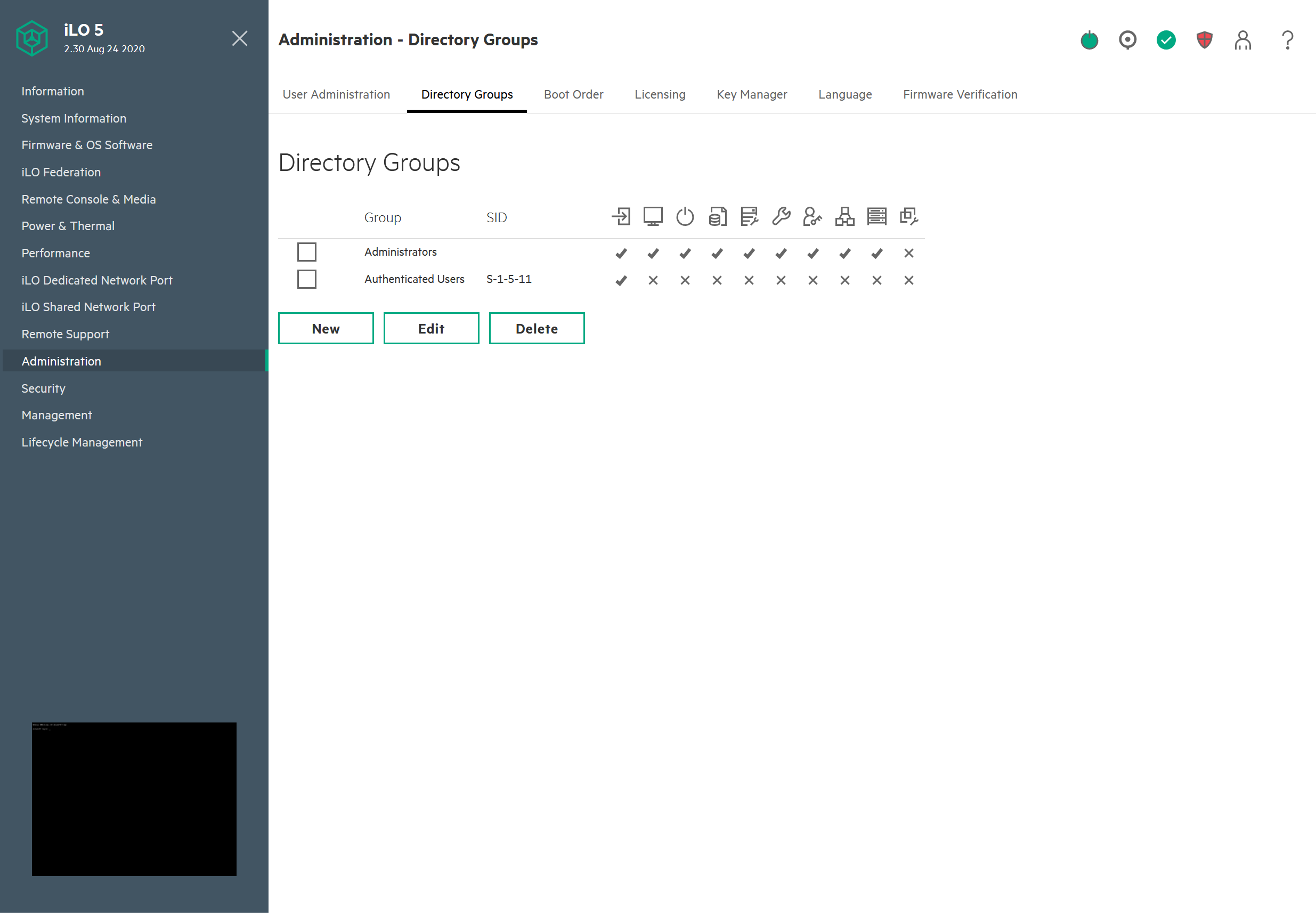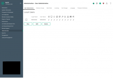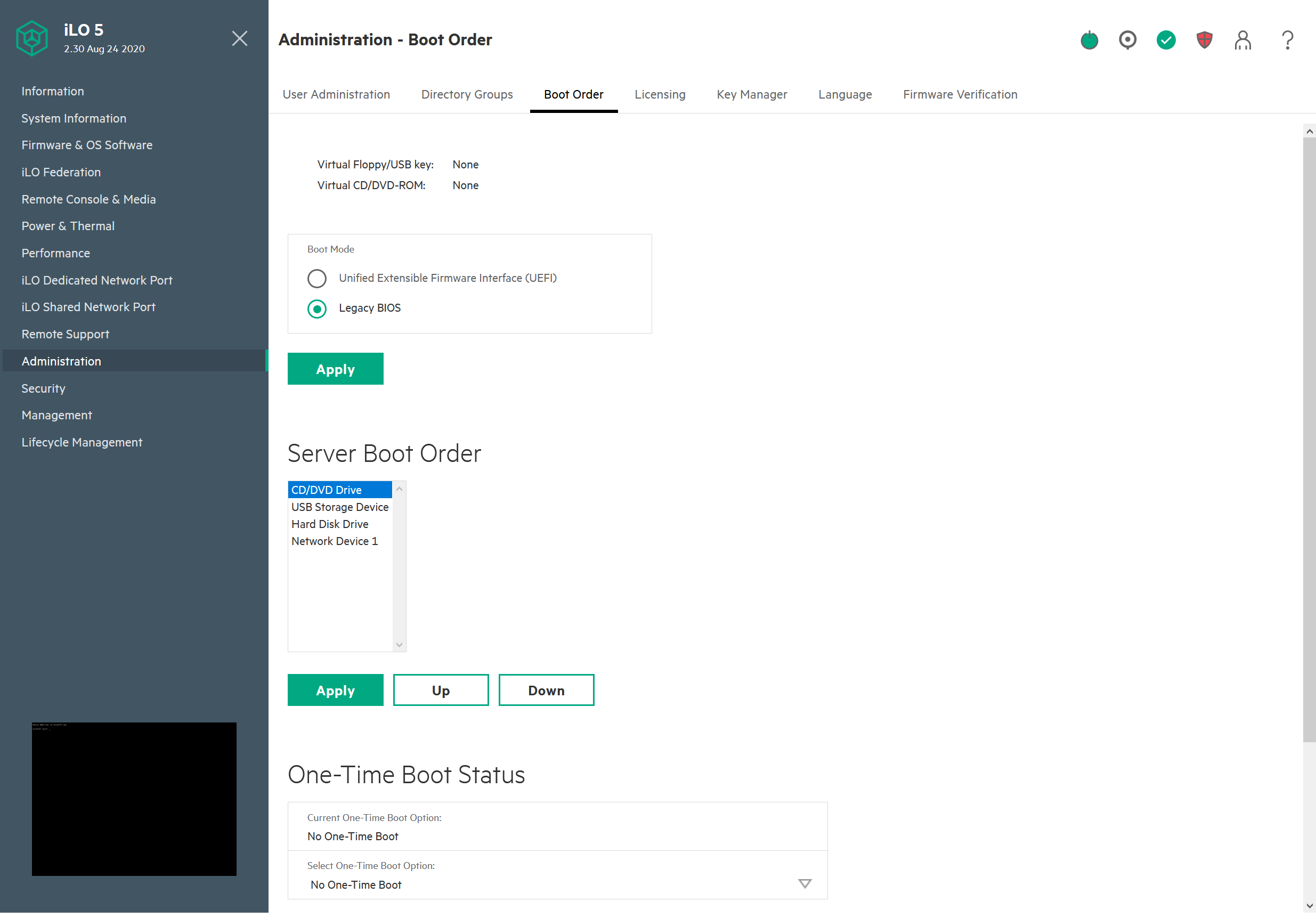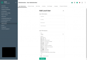Настройка аккаунтов и прав пользователей iLO осуществляется в разделе Administration. При этом можно разделить доступ к настройкам таких элементов как питание, удаленная консоль, сам iLO, сеть, накопители и так далее. Кроме того, в этой группе есть страница выбора опций загрузки сервера, установка лицензий iLO и другие.