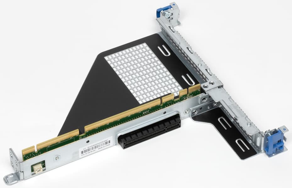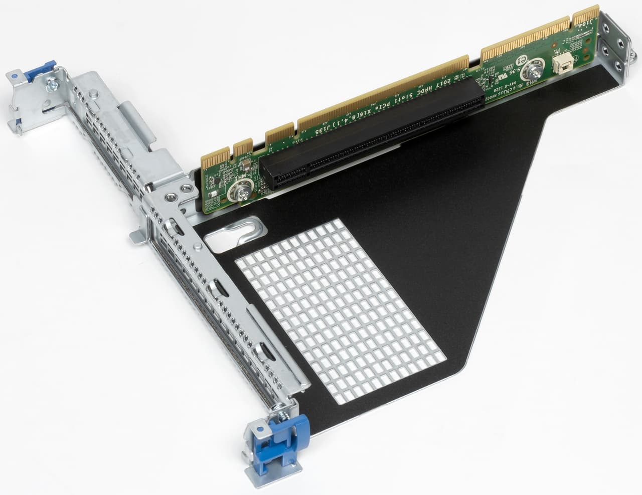 Отметим, что для установки плат расширения также можно обойтись без инструментов (но предусмотрено и крепление винтом), а при комплектации только одним процессором отсутствует и райзер для третьего слота расширения.