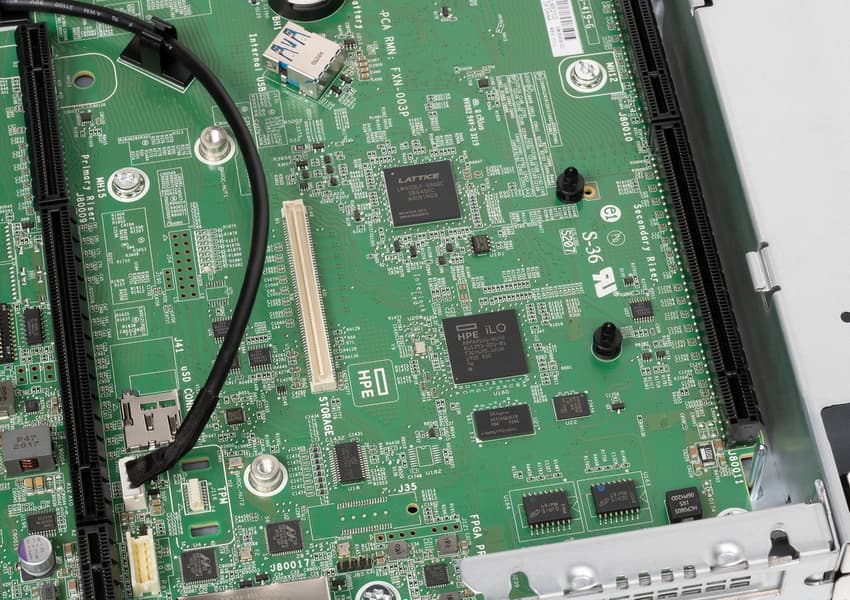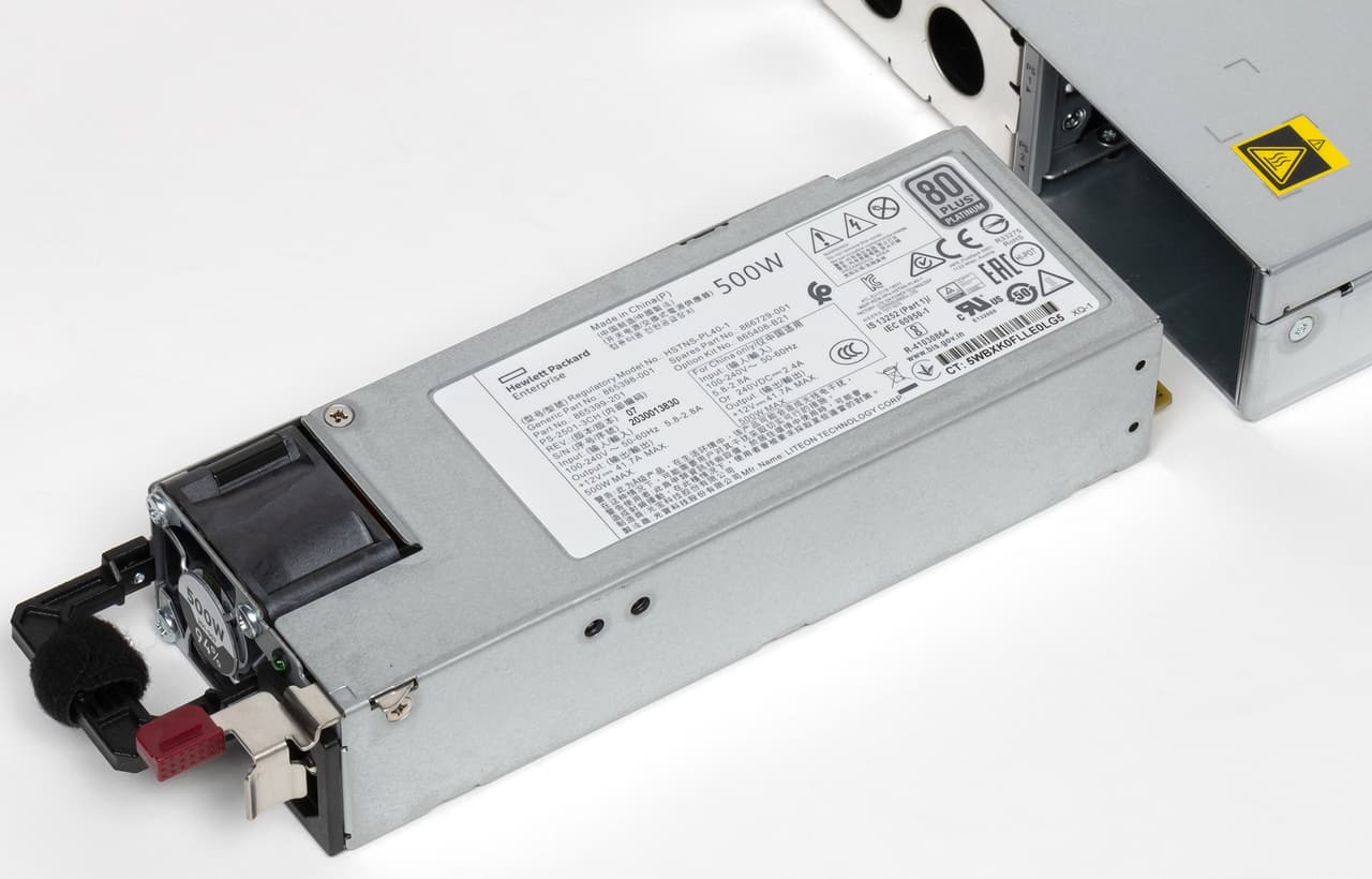 Произвела его для HPE известная компания Liteon. Хотя конечно в общем случае, могут встречаться и другие производители. Главное, что все это в едином формате, а также по спецификациям и под требования HPE. Отметим, что блок питания выдает только напряжение 12 В, а все остальные уже получаются через преобразователи на материнской плате.