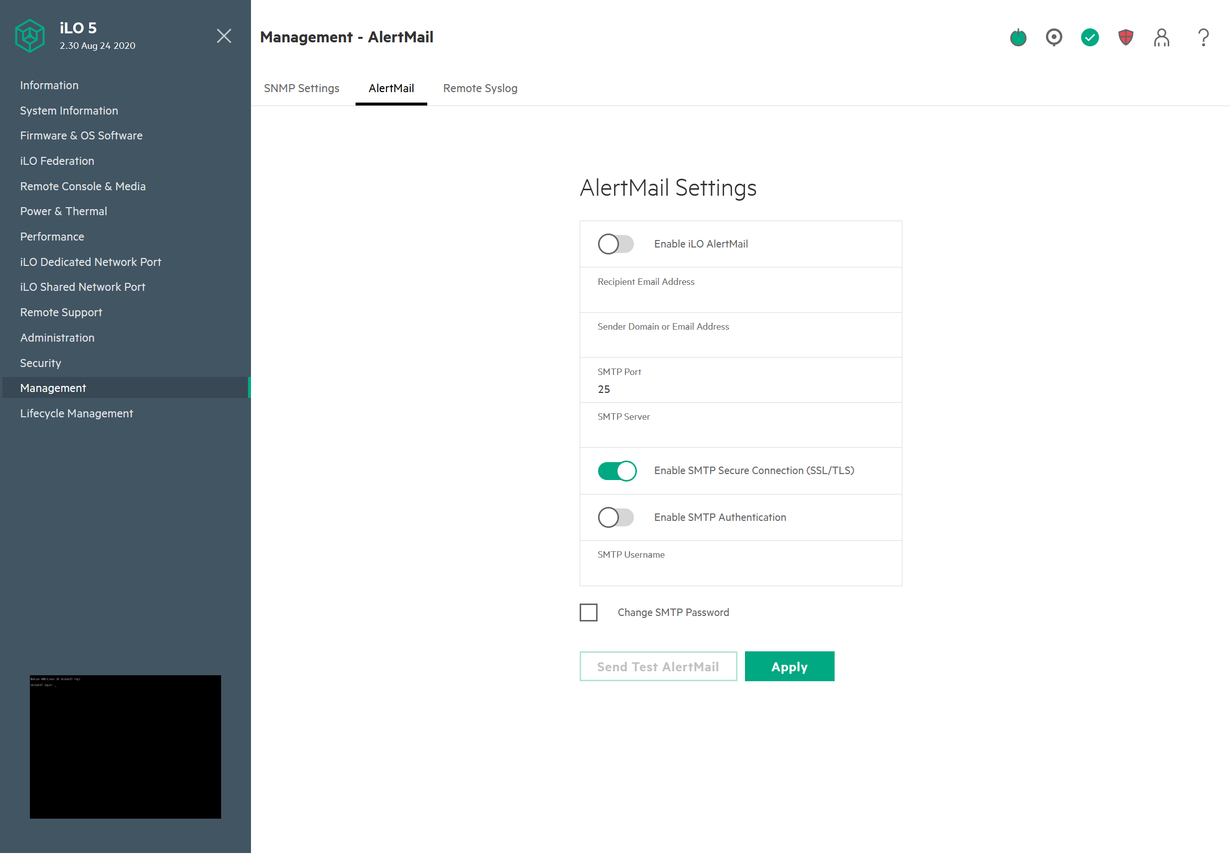 Для контроля за состоянием сервера предусмотрено несколько технологий — в частности это стандартные протоколы SNMP и Syslog, а также отправка уведомлений по электронной почте. К сожалению, в базовой версии iLO поддерживается только первый.