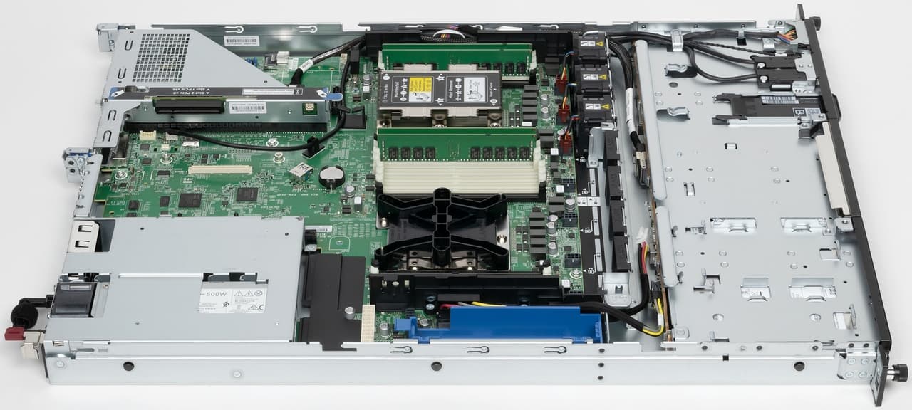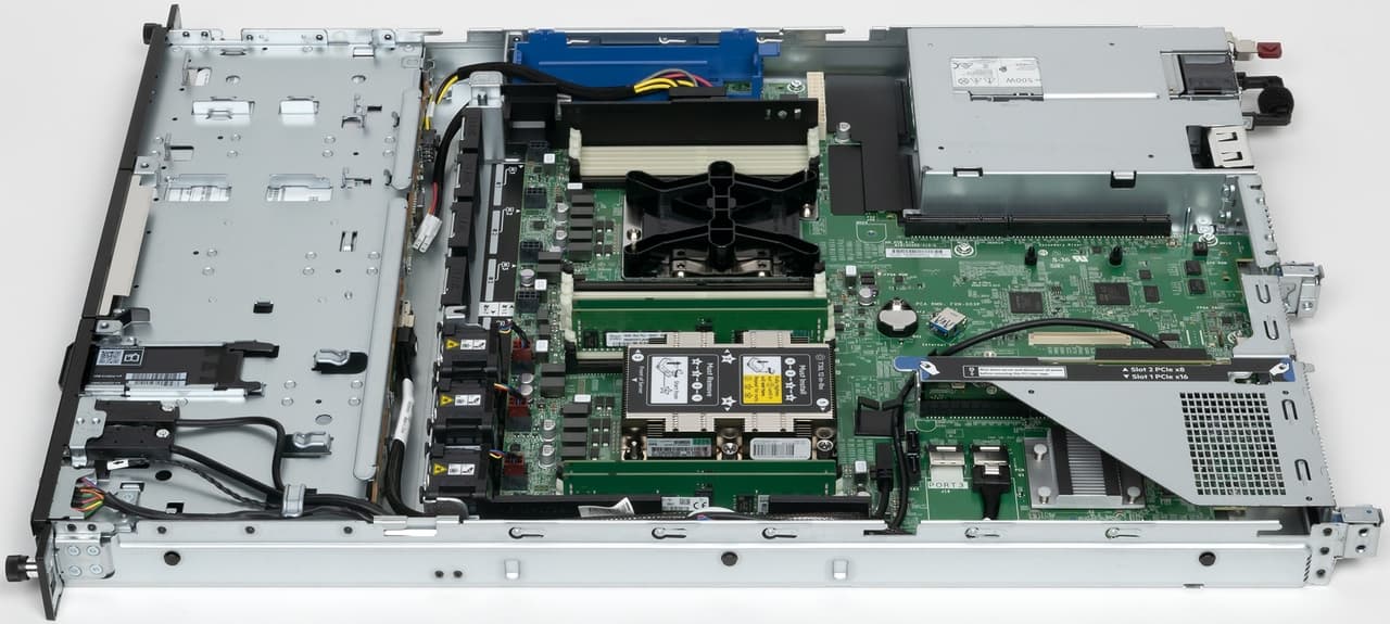 В данном случае компания предлагает около десятка готовых базовых конфигураций, которые, при необходимости доукомплектовать под требуемые задачи. Точнее будет сказать, что вам обязательно потребуется это сделать, поскольку в данных конфигурациях как минимум отсутствуют накопители. К примеру, предоставленный для теста вариант P35515-B21 был расширен поставщиком установкой дополнительных модулей памяти и парой жестких дисков. Подробнее посмотреть варианты для рассматриваемой модели и комплектации можно в специальном документе на сайте производителя.