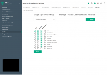 Привычные схемы с логином и паролем с точки зрения безопасности сегодня могут уже не устраивать. Так что в дополнение к интеграции системы аутентификации с каталогом LDAP в разделе Security можно настроить работу с Kerberos, сертификатами, смарткартами и HPE SSO.