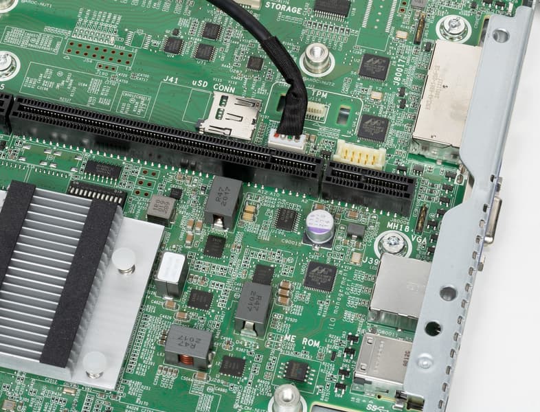 На материнской плате можно заметить слот для карт памяти microSDHC и внутренний порт USB 3.0 Type A, которые можно использовать для размещения файлов операционной системы.