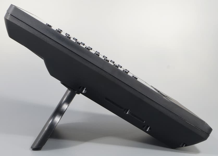 Корпус консоли состоит из двух блоков: черно-зеркальной панели дисплея с клавишами и матового основания с двумя навигационными кнопками. Яркий цветной дисплей обеспечивает неплохие углы обзора, а встроенные в клавиши светодиоды указывают на активность того или иного аккаунта либо функции.