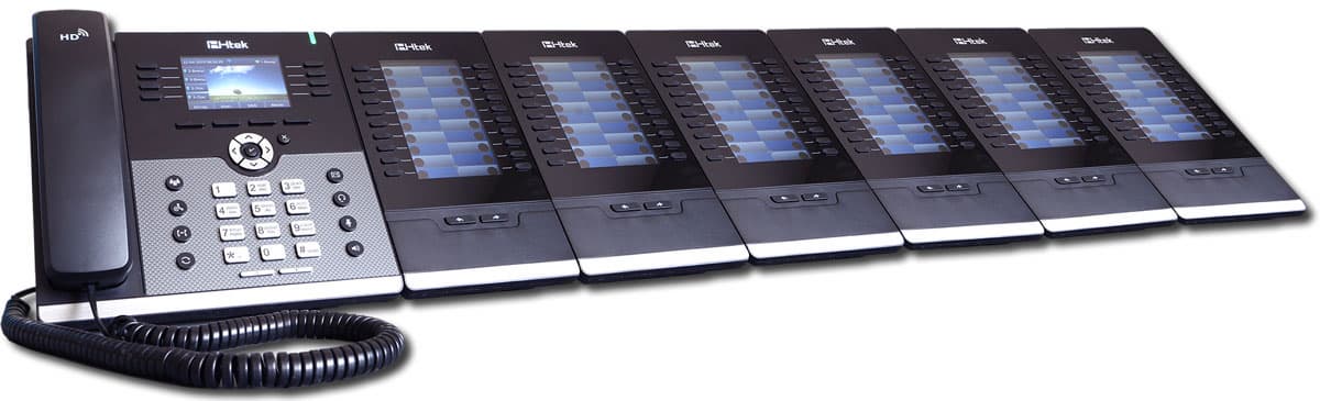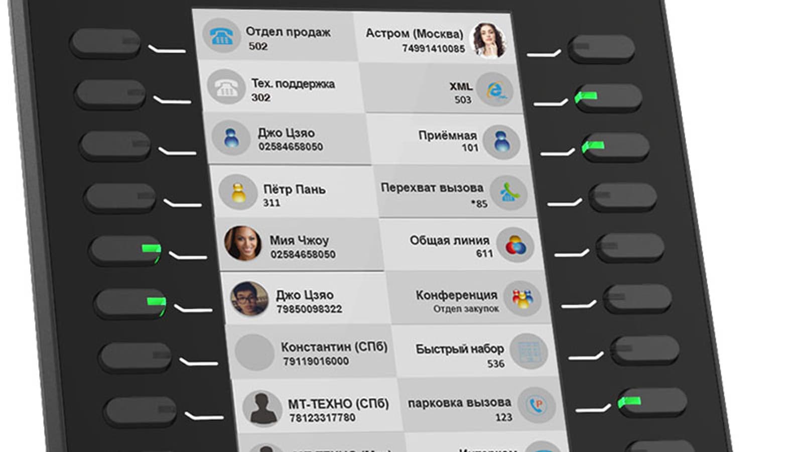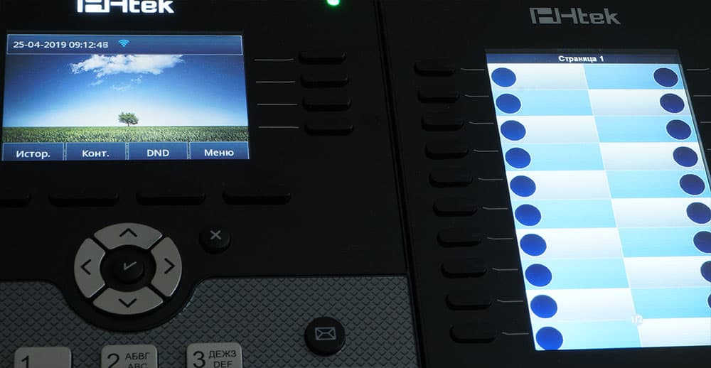Теоретически IP-телефоны Htek поддерживают работу с шестью (!) консолями расширения — это во-о-от такой паровозик на рабочем столе. Трудно представить ситуации, когда может понадобиться такое количество доступных одновременно контактов. Разве что какая-то диспетчерская, где требуется мгновенный вызов одного из нескольких сотен абонентов.