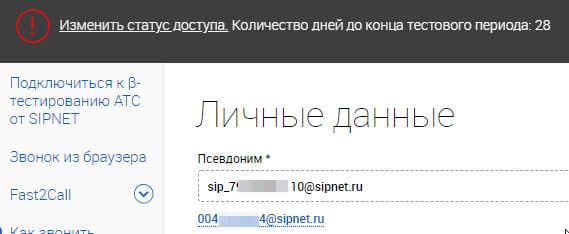 Ввод идентификатора SIP