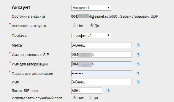 При наличии второго аккаунта (как в нашем случае с локальной мини-АТС) эту несложную операцию следует повторить, в результате чего телефон получает два номера: с внешнего сервиса и из локального FreePBX.