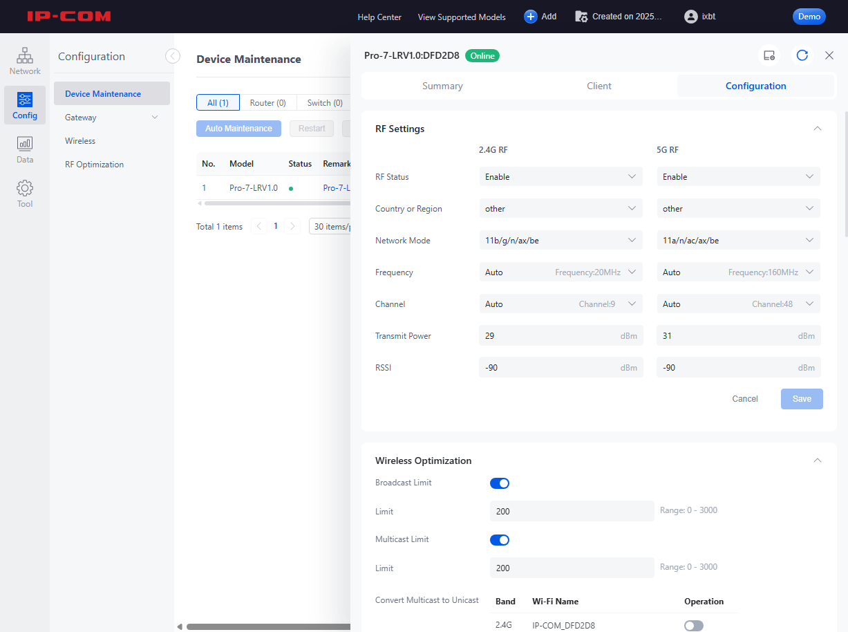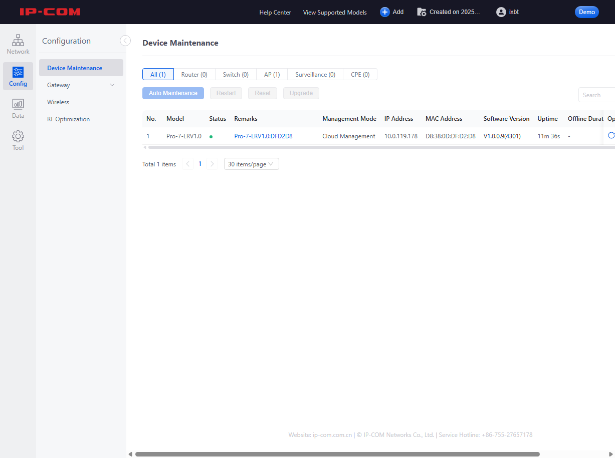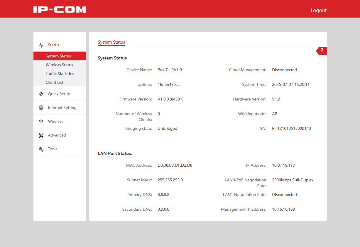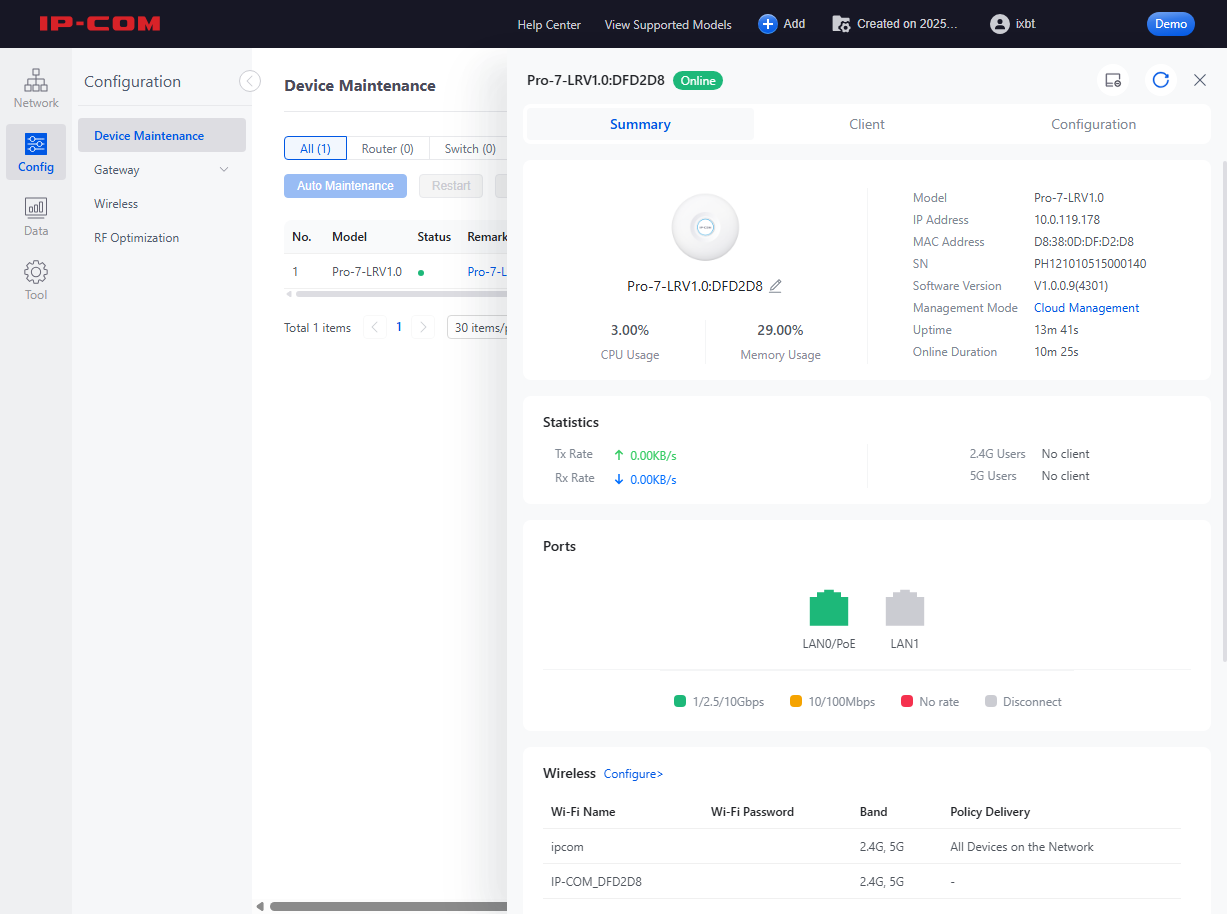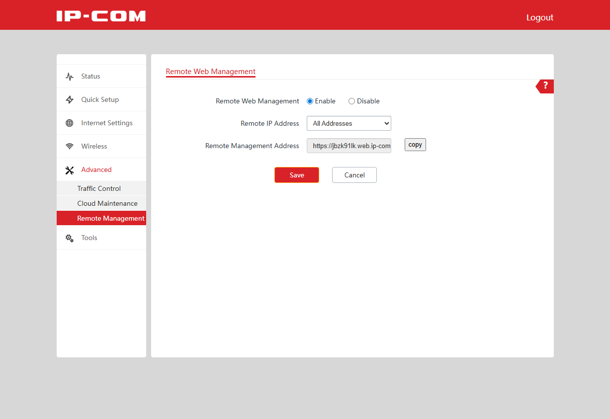 Функция Remote Management не связана непосредственно с облачным сервисом, но позволяет администратору получить удаленный доступ к веб-интерфейсу устройства по определенному уникальному адресу в виде https://xxxxxxxx.web.ip-com.com.cn:8082. Достаточно только обеспечить доступ точки к интернету.
