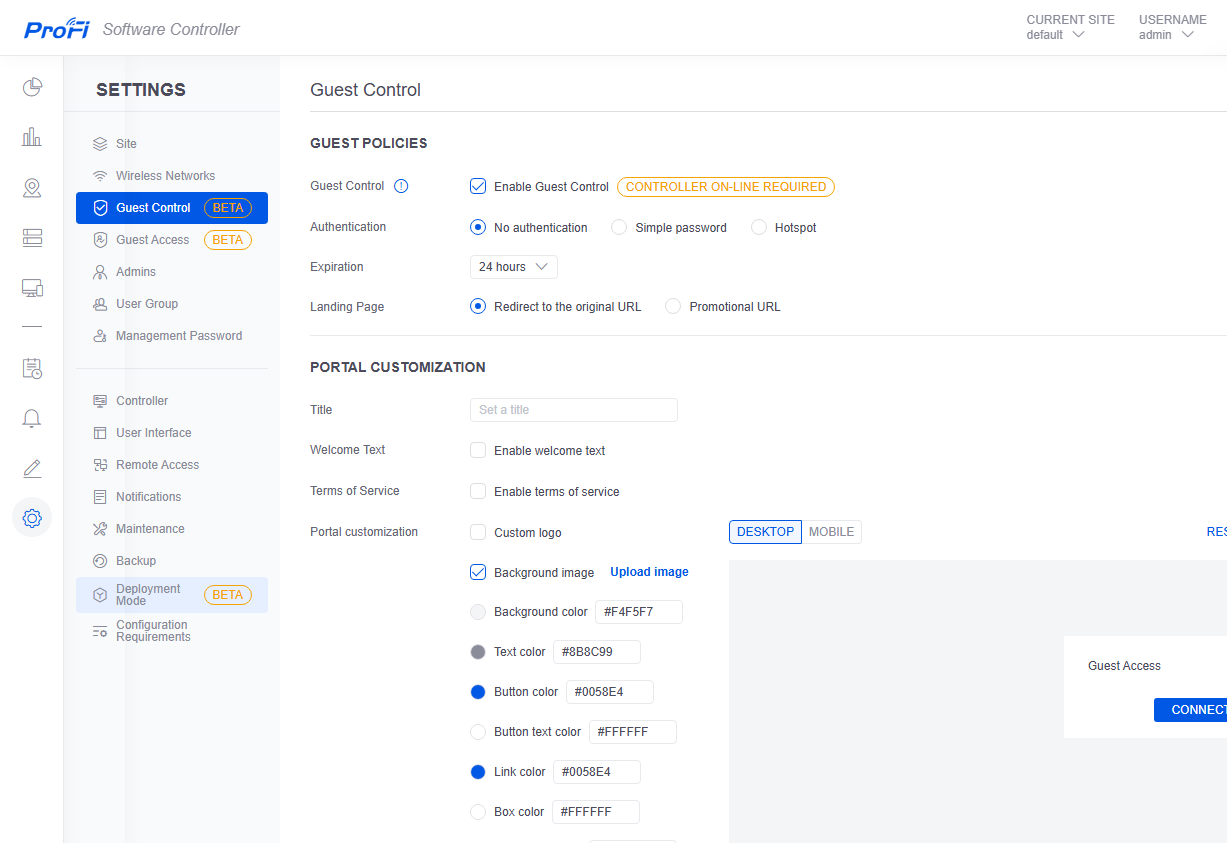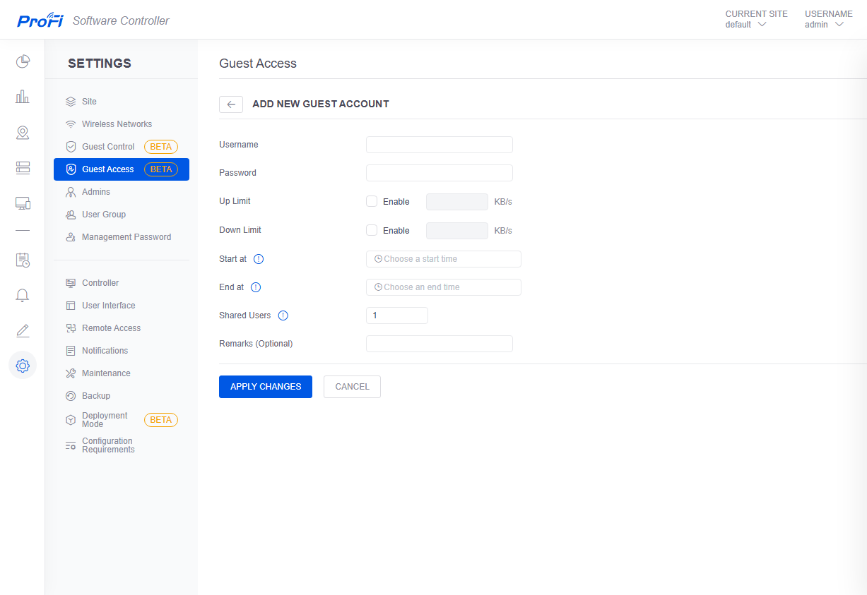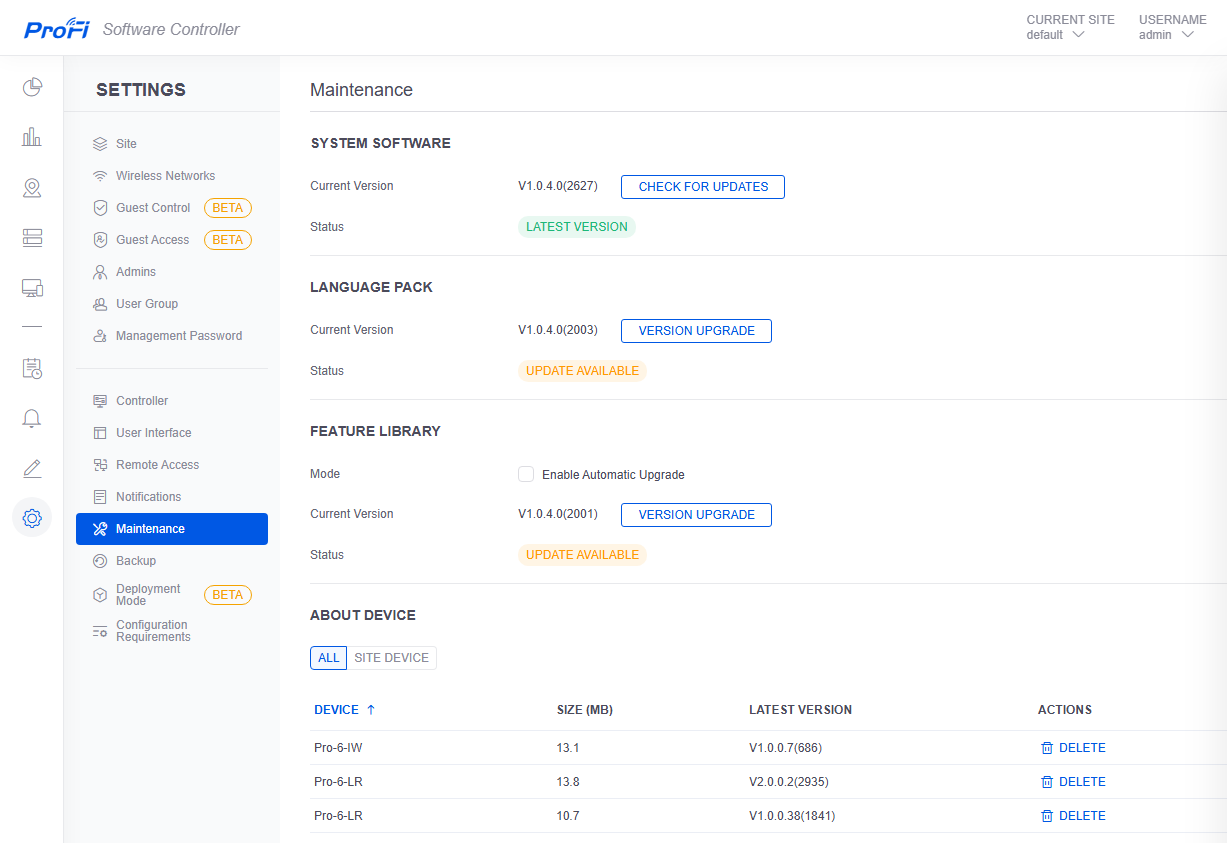 Предусмотрено создание нескольких независимых «сайтов», на которых можно разворачивать беспроводные сети, что может быть полезно для крупных компаний. Отметим, что можно использовать гостевые доступы со входом через портал или собственную встроенную базу аккаунтов. Есть функции обновления самого контроллера и прошивок точек доступа, создания и восстановления резервной копии базы контроллера.