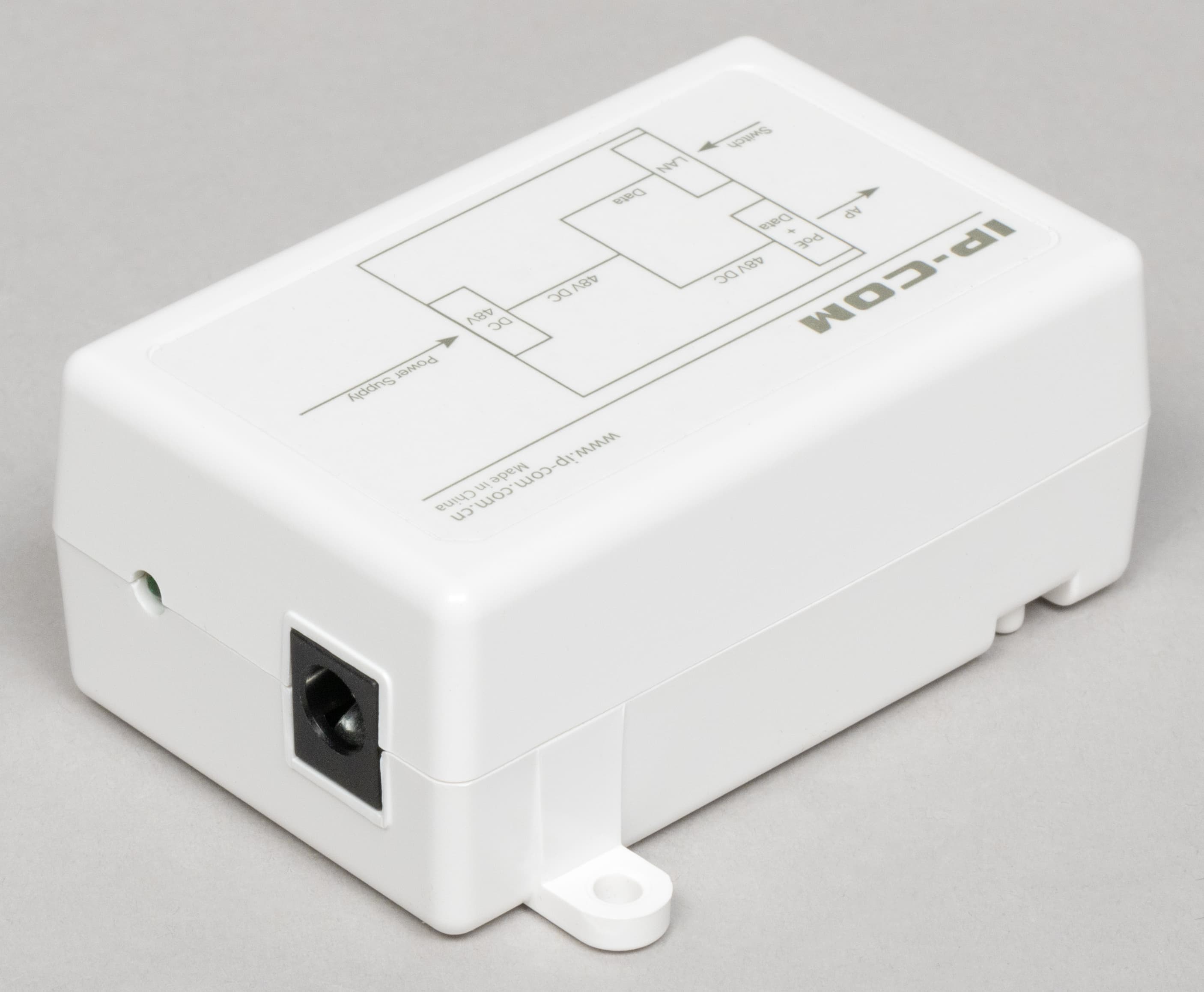 С одной стороны у него находятся два сетевых порта, а с другой — вход для блока питания и индикатор наличия питания. Возможности сброса настроек точки доступа с инжектора не предусмотрено.