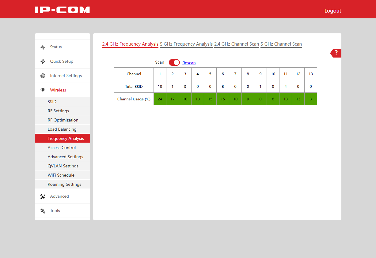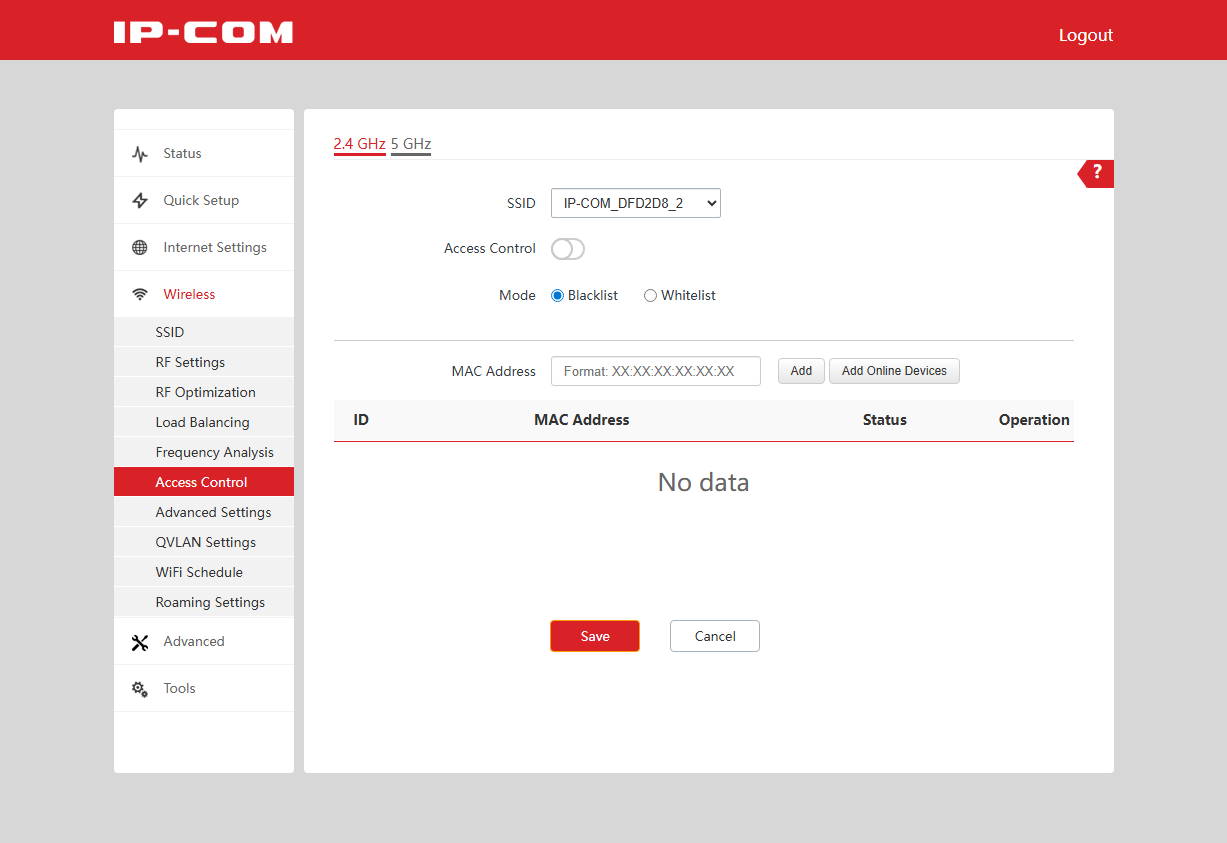 Решение имеет функцию балансировки клиентов по точкам доступа или по диапазонам. Судя по настройкам, работает она по числу клиентов без учета характеристик их подключения. При выборе номеров каналов можно использовать встроенный сканер частот для определения наименее загруженных. Точка доступа поддерживает работу со списками доступа по MAC-адресам клиентов. Они настраиваются в «черном» или «белом» режиме независимо для каждого SSID.